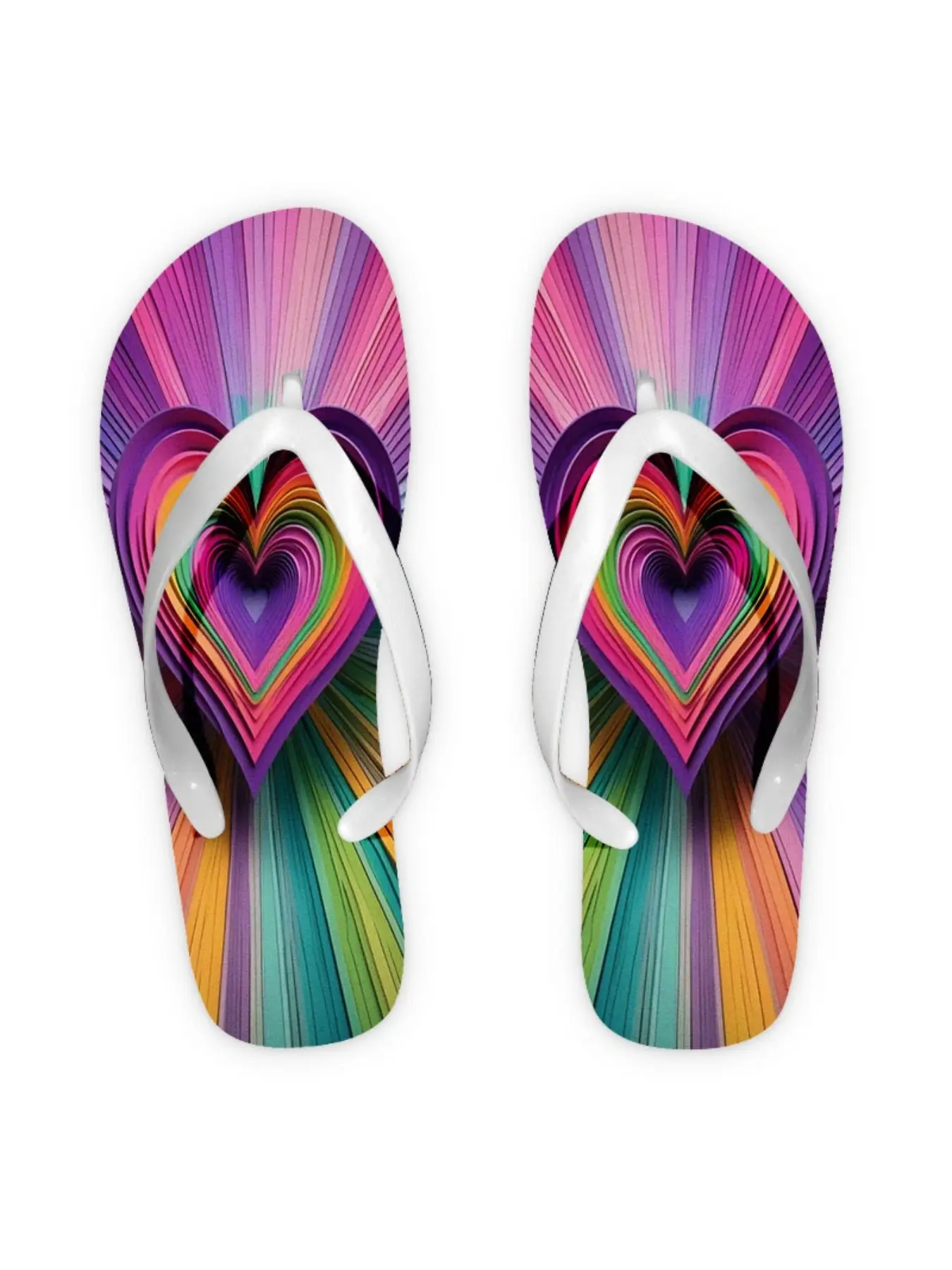 Women's Flip Flops, Rainbow Heart Style, Multiple Colors & Sizes Available, Comfortable Wear, Suitable for Summer Beach & Daily Use, Fashionable Design, Durable Material, Women Shoes