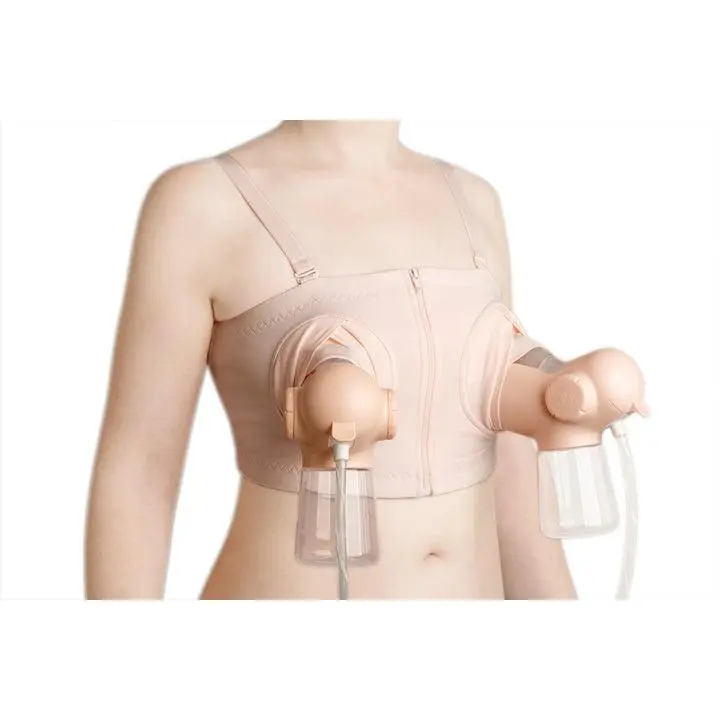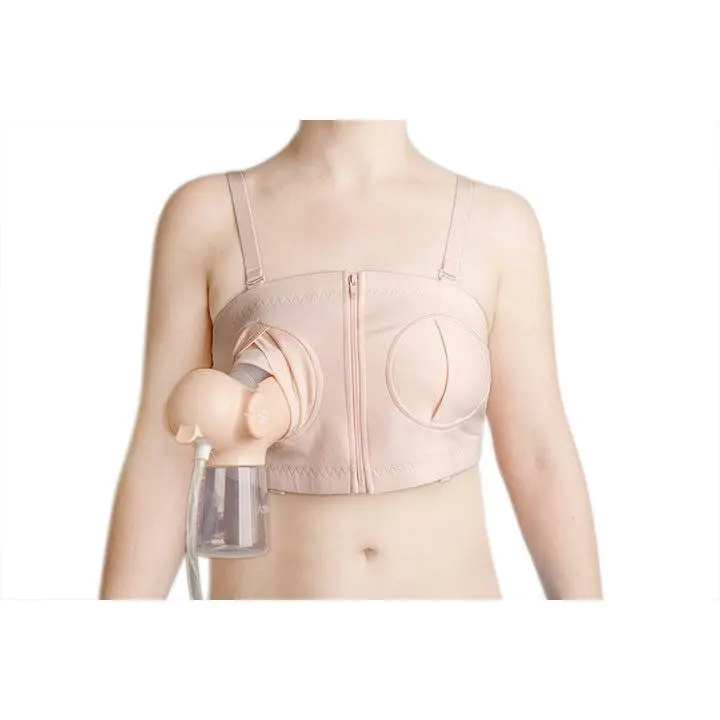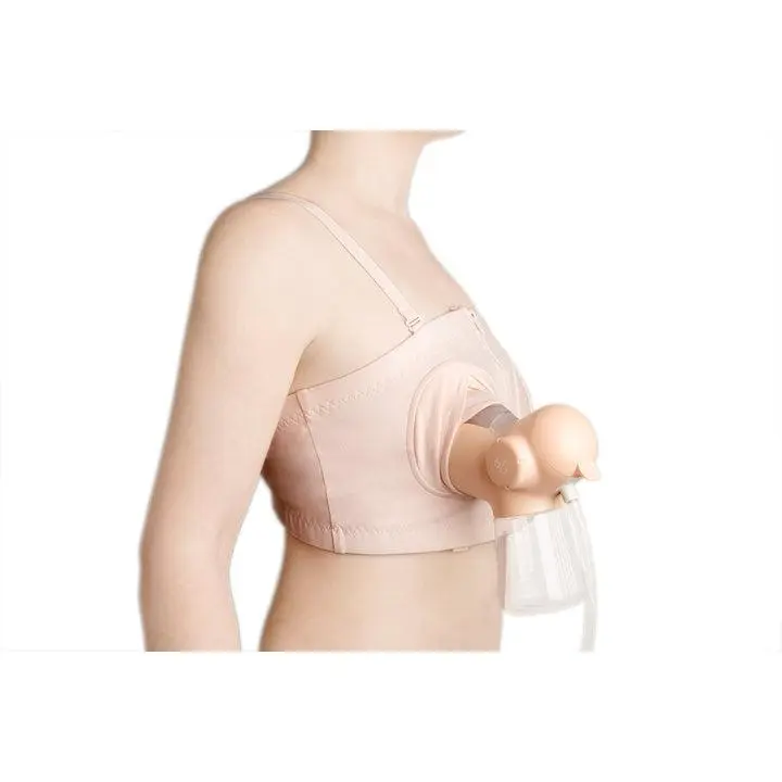 Pumping bra designed to provide secure, comfortable, and discreet pumping experience, hands-free, customizable, soft and breathable fabric– fits up to size 40F US / 90F EU.