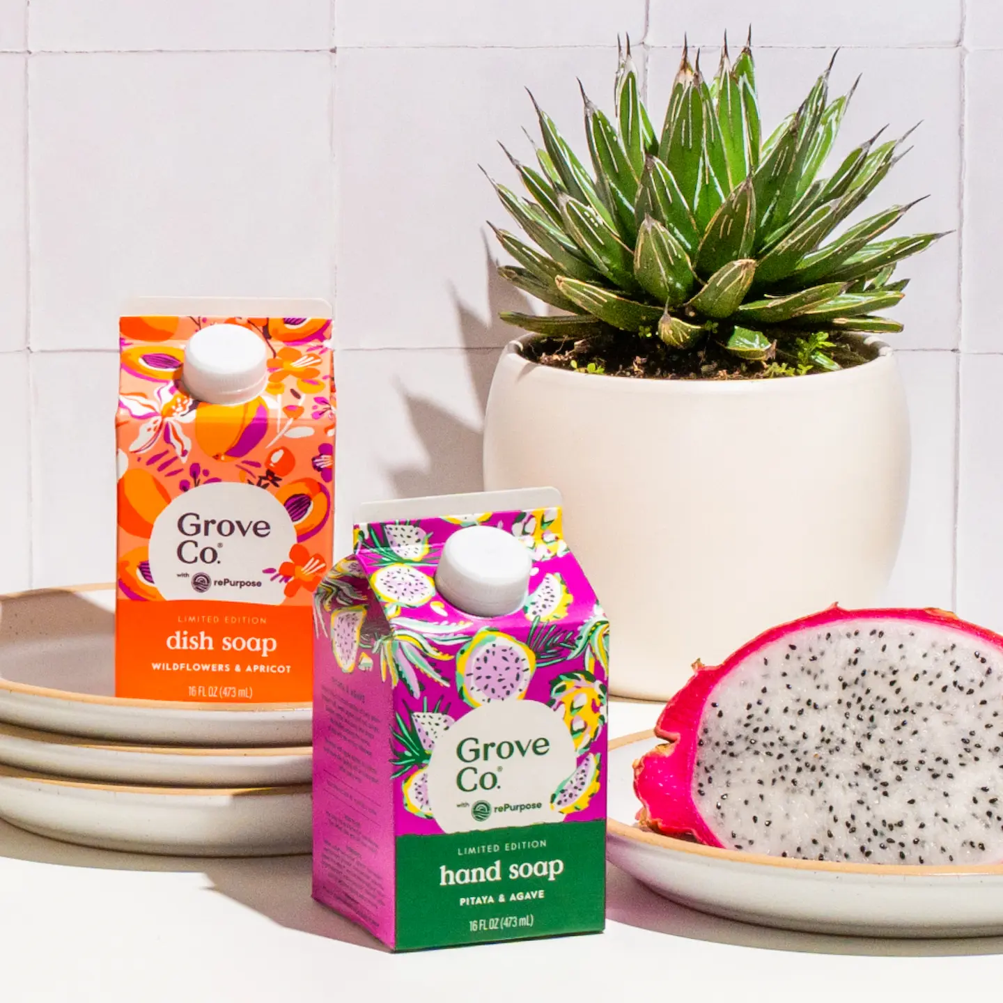 Warmer weather is on its way with this Grove Co.™ limited edition collection. Vibrant, limited-edition tropical scents wrapped in packaging inspired by Colombian artistry. This powerful formula, made with 98% plant-based ingredients, removes 48-hour stuck-on food from over 1,000 dishes — no elbow grease required. As always, free of harsh additives like triclosan, parabens, phthalates, phosphates, and dyes. Packaged in FSC-certified, recyclable paper carton that holds enough soap to fill 2+ dispensers.