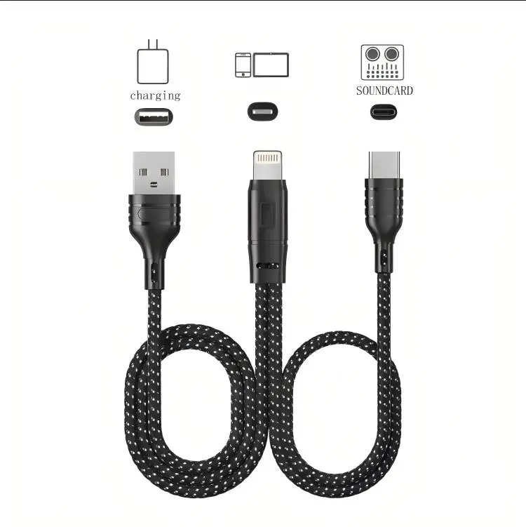 Only 1 Dollar !!! OTG Charging And Live Broadcast Cable With Typec+Lightning+USB A, Conversion Cable For Android iPhone Sound Card PC Alloy Aluminium portable chargers Smartphone Cellphone portable chargers car charger