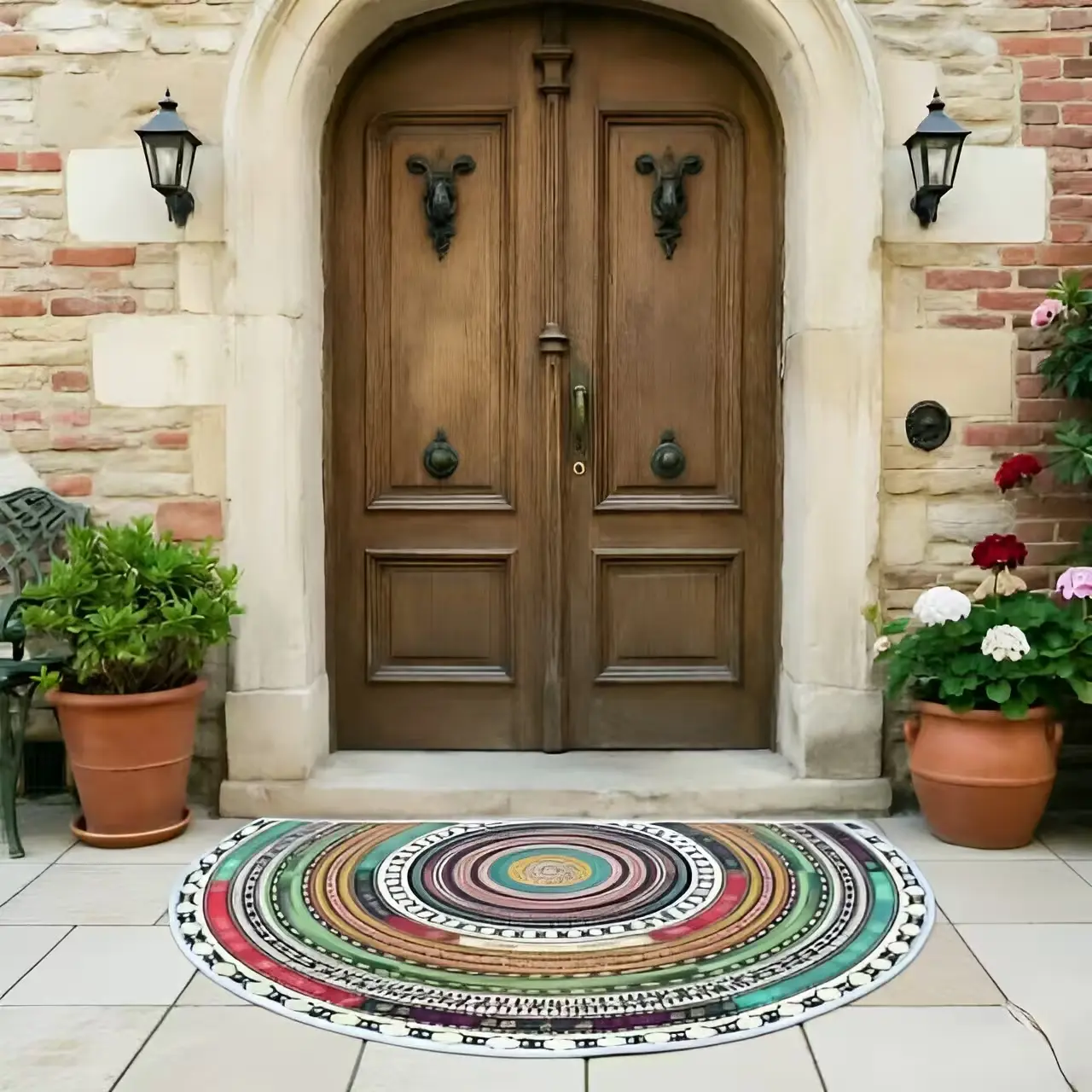 Infuse your living space with free-spirited bohemian flair with our Boho Style Semicircular Door Mat! Meticulously designed with eye-catching boho graphic prints, this versatile floor rug combines artistic aesthetics, unbeatable comfort, and practical functionality. It’s an ideal decorative accent to transform entryways, living rooms, bedrooms, kitchens, and more, adding a warm, cozy, and stylish touch to every corner of your home. Whether you’re revamping your interior decor or looking for a functional yet beautiful floor covering, this semicircular rug is a standout choice for modern homes.