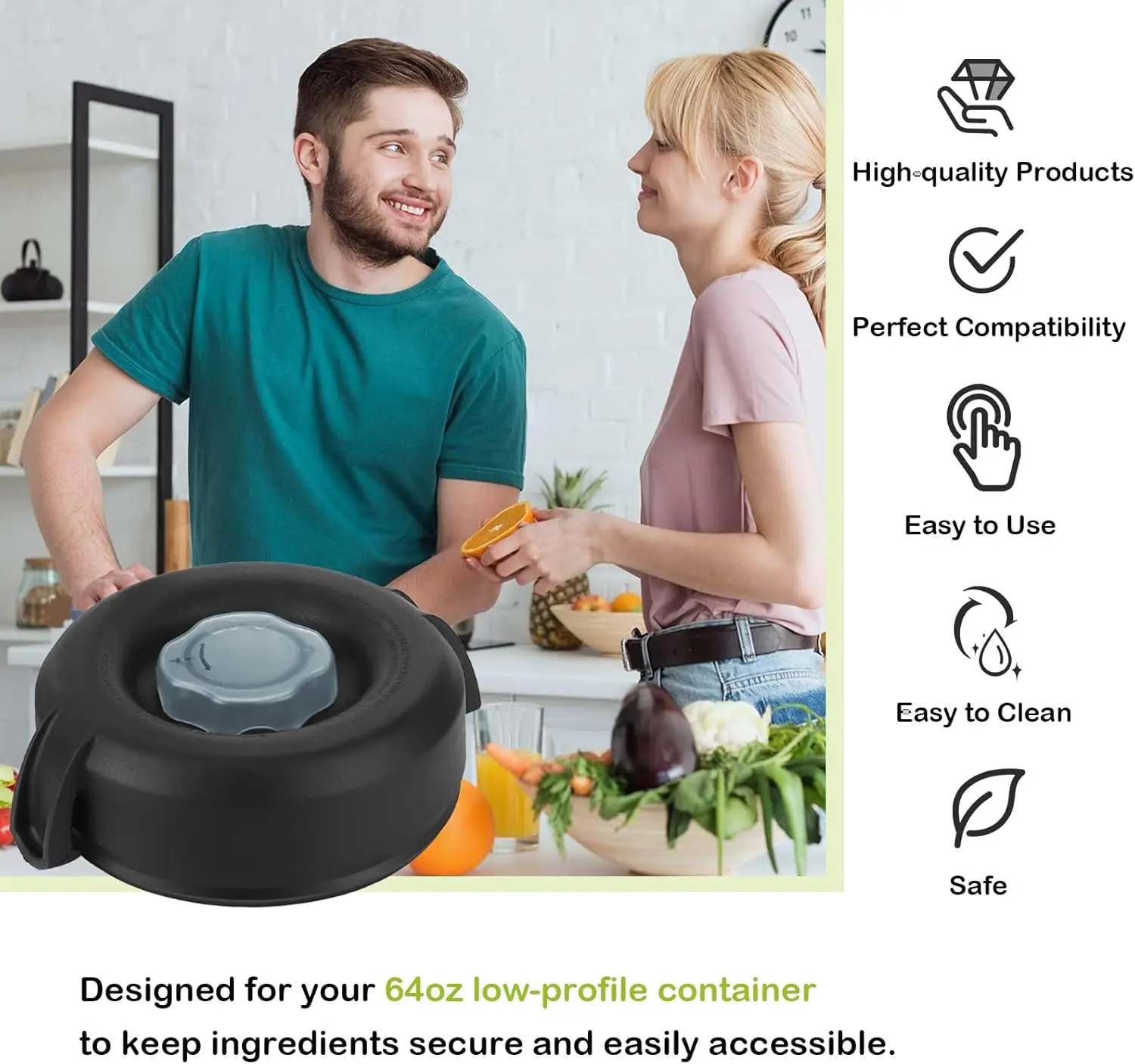 ·Ready to change, no installation required. The 2-piece lid Perfect for friends needing a replacement for a broken 64oz low profile blender lid and is easy to clean, put on, take off, and seal. The lid plug is easy to use and can be removed when using the tamper or adding ingredients.