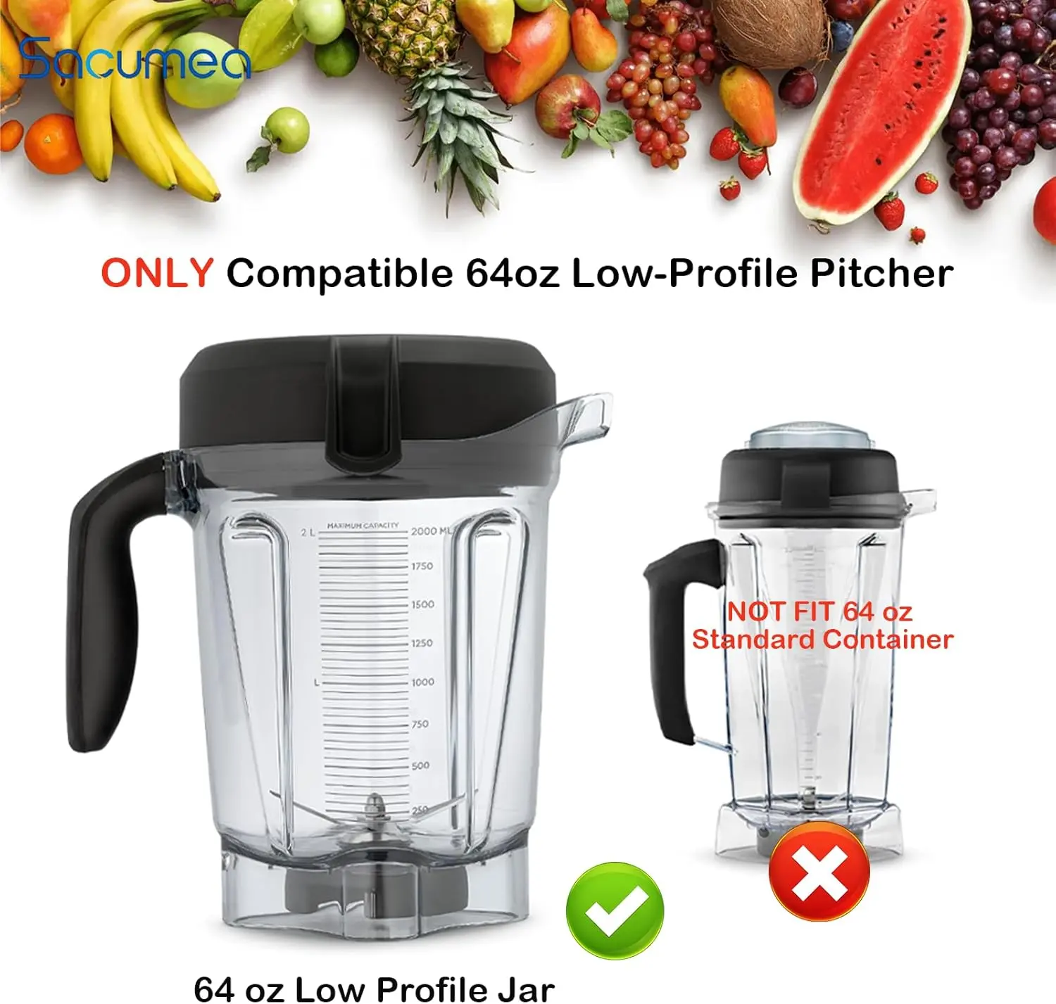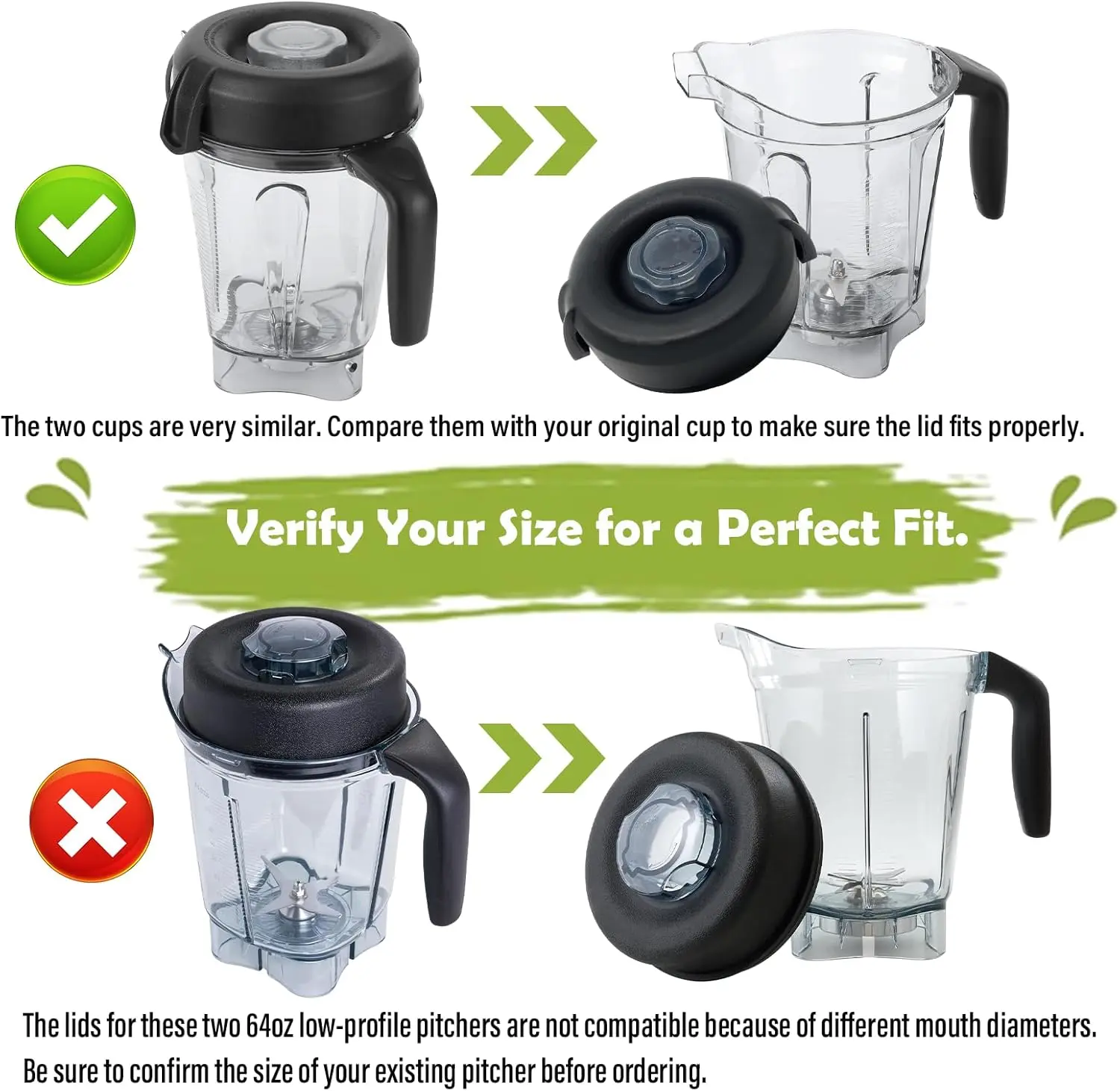 ·【COMPATIBILITY】This blender lid replacement is compatible with low-profile 64oz containers, including the Pro 750 Series.PLEASE NOTE: This lid fits ONLY 64oz low-profile (short) containers (10.1" height).NOT for classic tall 64oz containers (13.4" height)