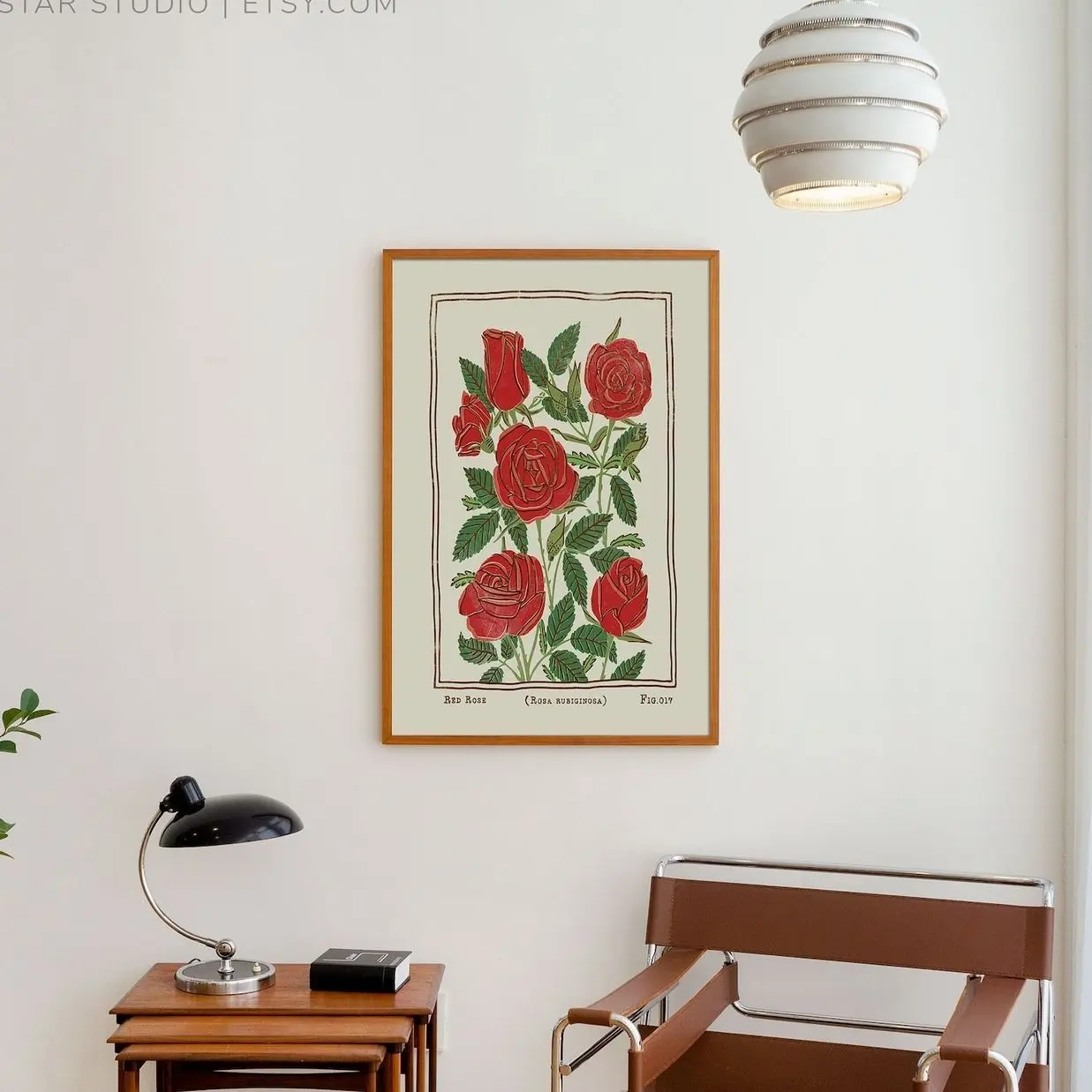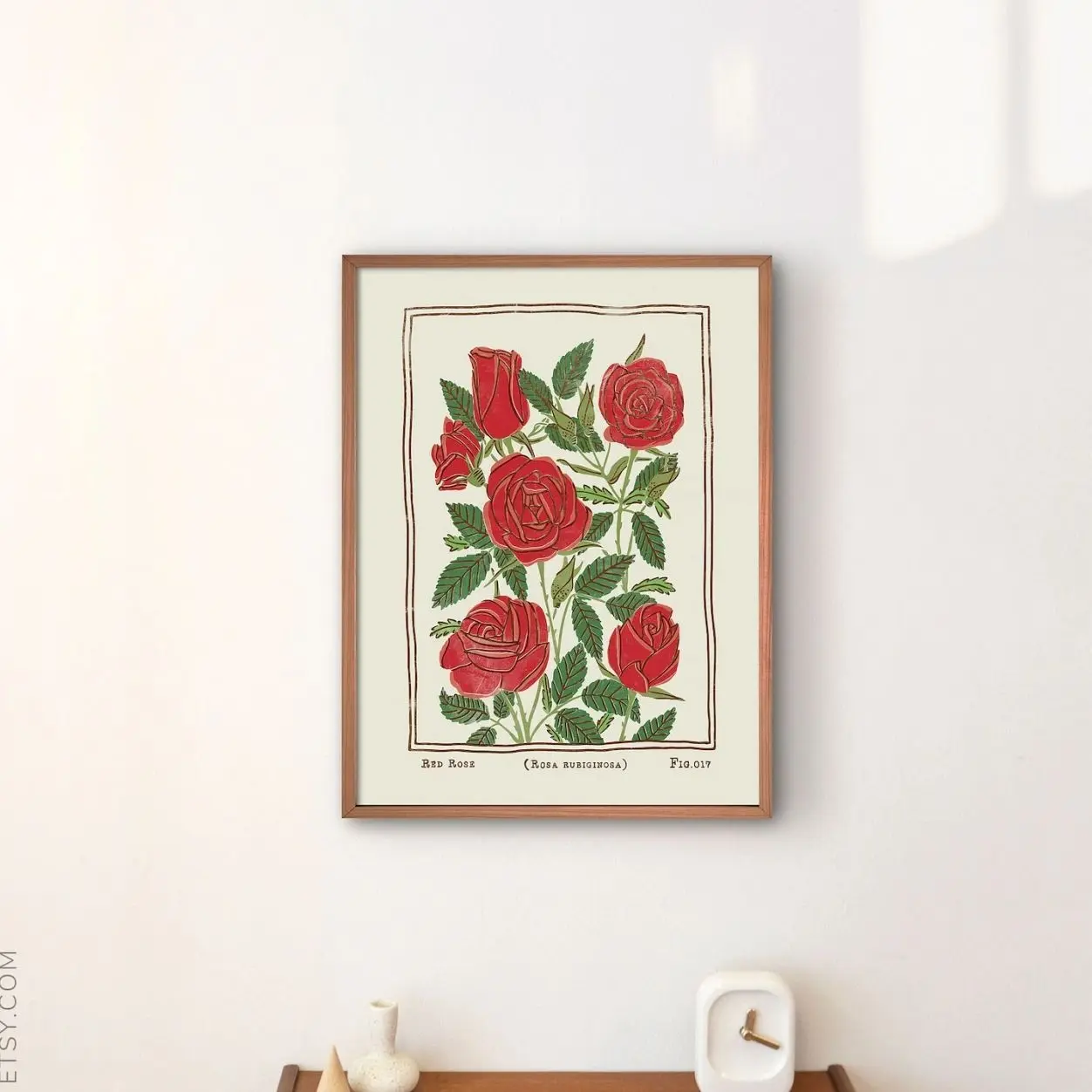5. Red Rose Art Print: Vintage Style Botanical Flower Poster | June Birth Flower | Unframed A