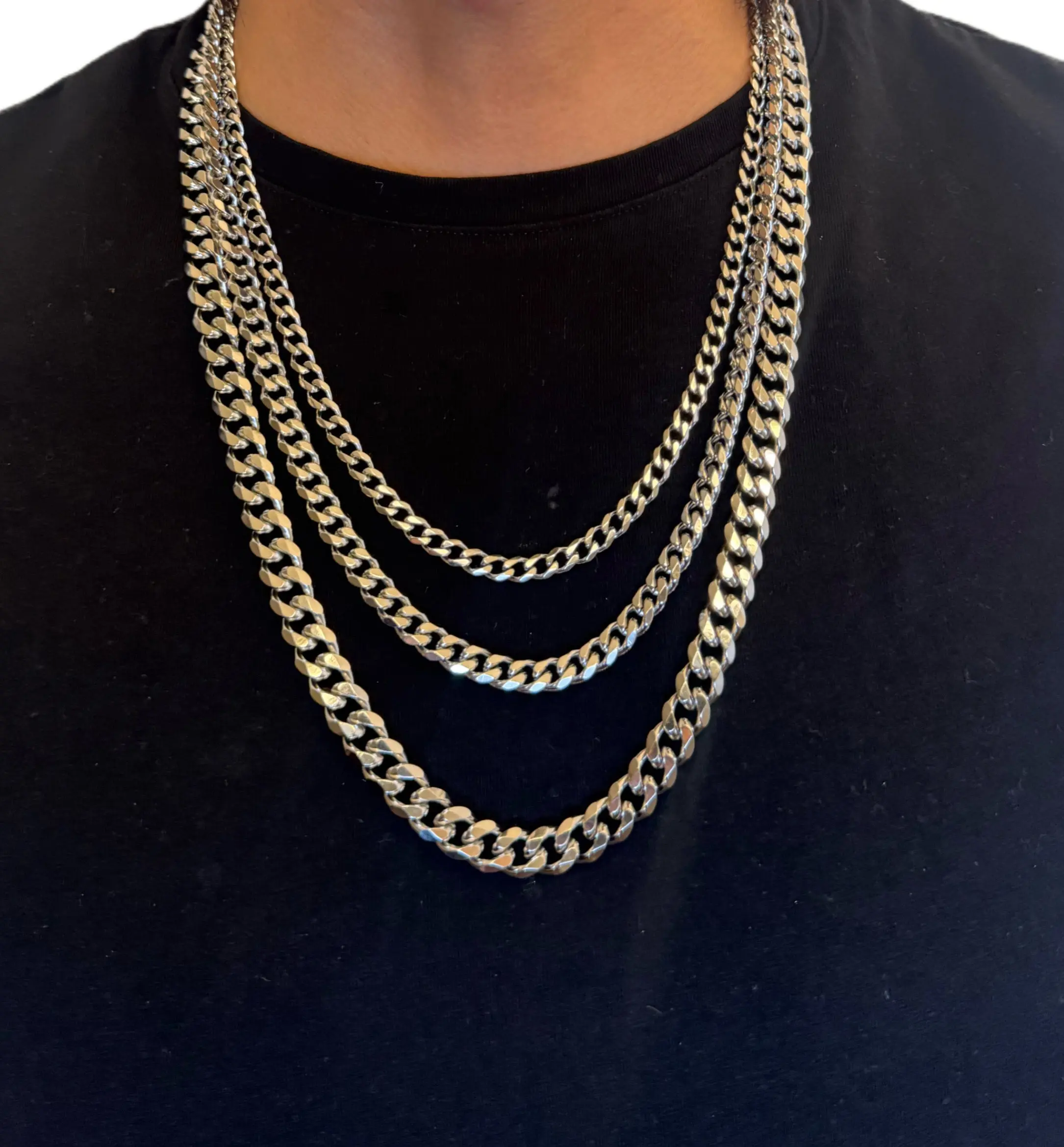 Our signature 316L stainless steel Cuban chain. sleek, bold, and made to last. Water resistant, tarnish free, and designed to shine without turning your skin green. Just $9, no markup.