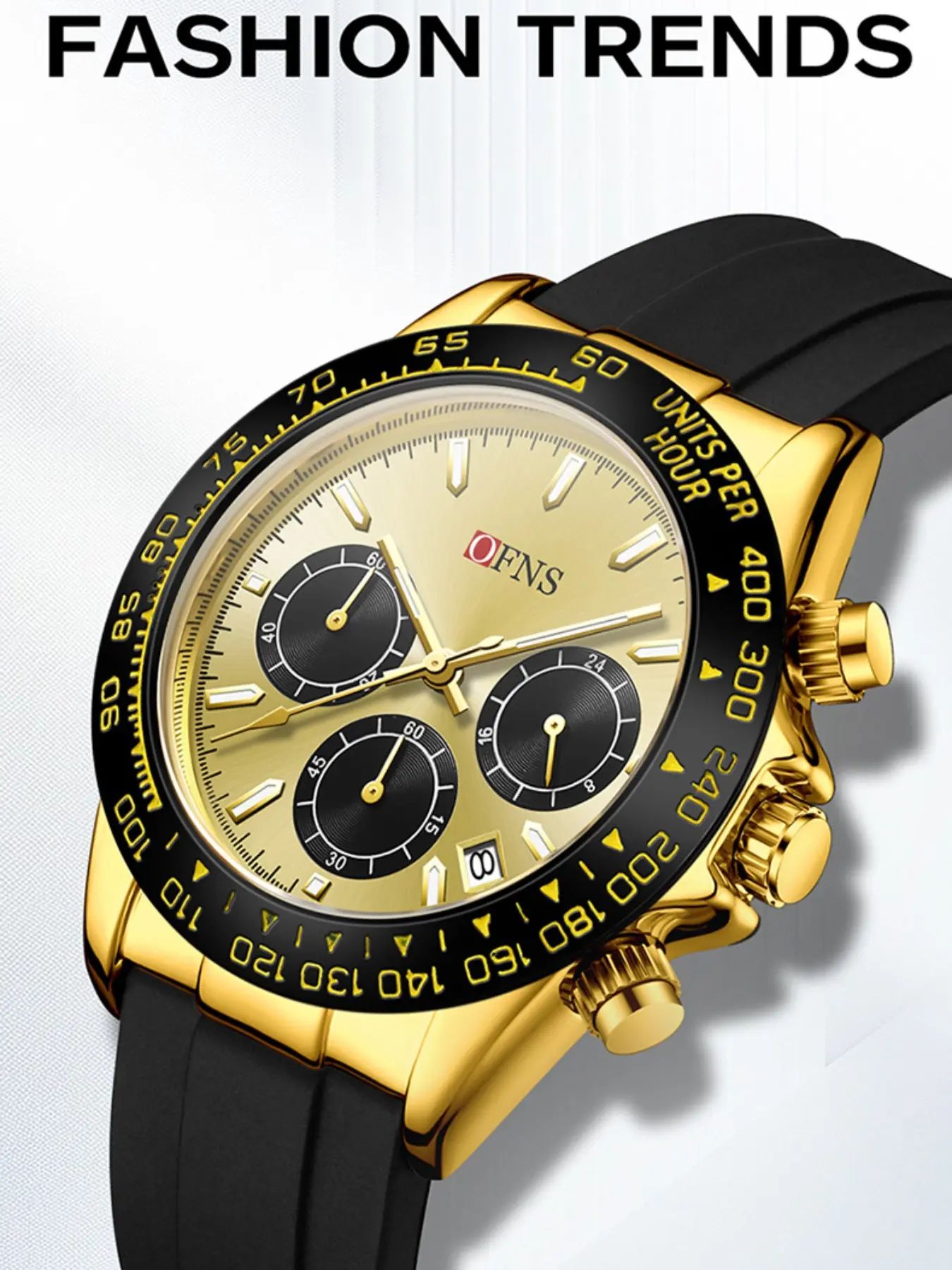 OFNS Quartz Watch, Waterproof Sport Three Eyes Six Hands Calendar, Men's Business Casual Night Light Fashion, Unisex Round Analog Face