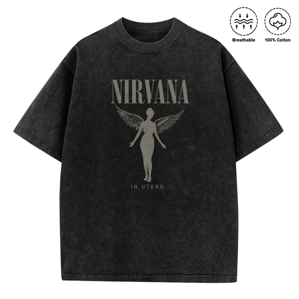 Washed T-shirt made of 100% cotton with double-sided printing Nirvana in Utero Distressed Logo Adult Short Sleeve T Shirt 90s Grunge Music Vintage Style Graphic Tees