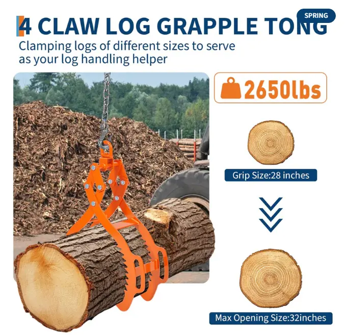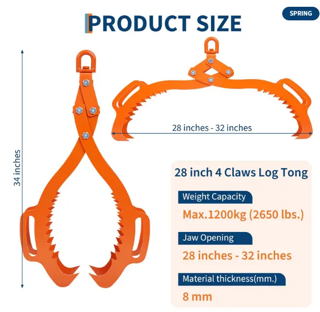 ·【Universal Compatibility】Designed for ultimate adaptability, these Log Grapple Logging Tongs integrate seamlessly with a wide range of machinery. From small backyard splitters to heavy-duty industrial equipment, our claw hook design ensures multi-model compatibility. No matter your setup—these tongs are built to perform.