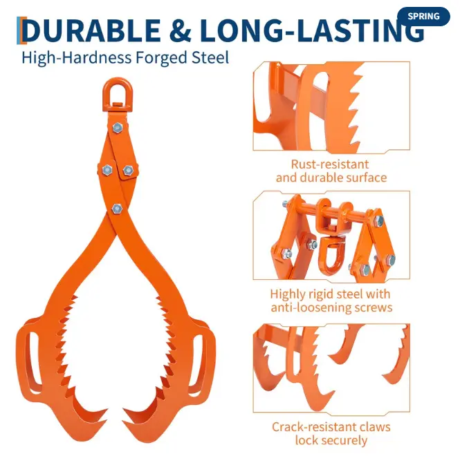 ·【Effortless Log Handling】This robust attachment enables effortless lifting and moving of logs of all sizes without manual intervention. The automatic self-tightening claw mechanism ensures a secure grip, reducing slippage and maximizing productivity in forestry, recycling, and material handling operations. Built for heavy-duty use, Claw Hook minimizes operator effort while delivering exceptional performance in demanding environments.