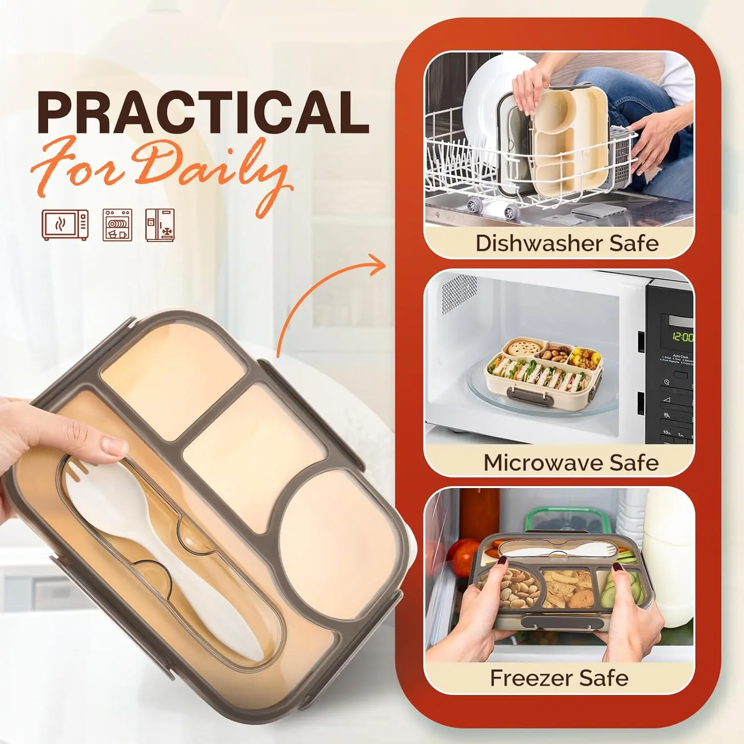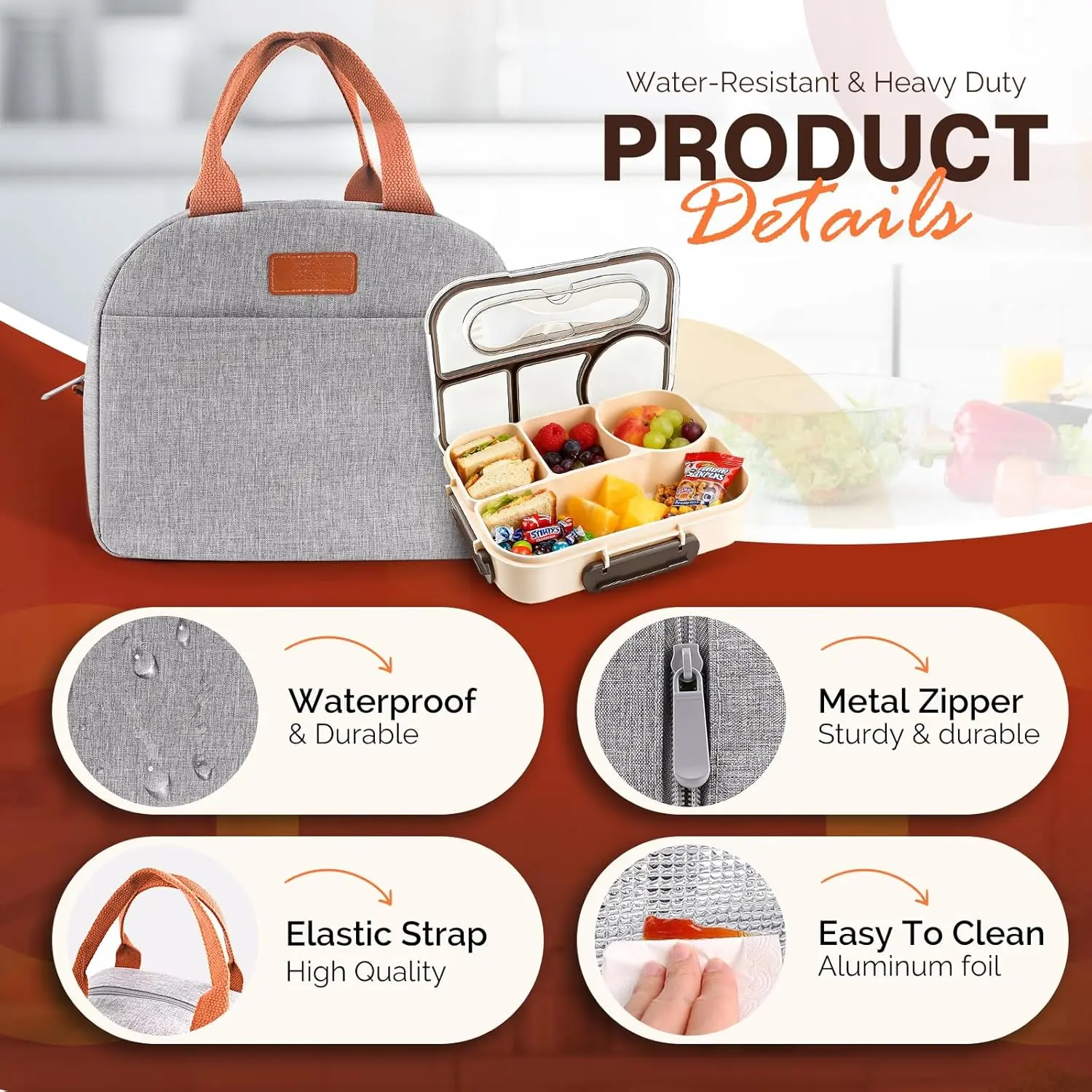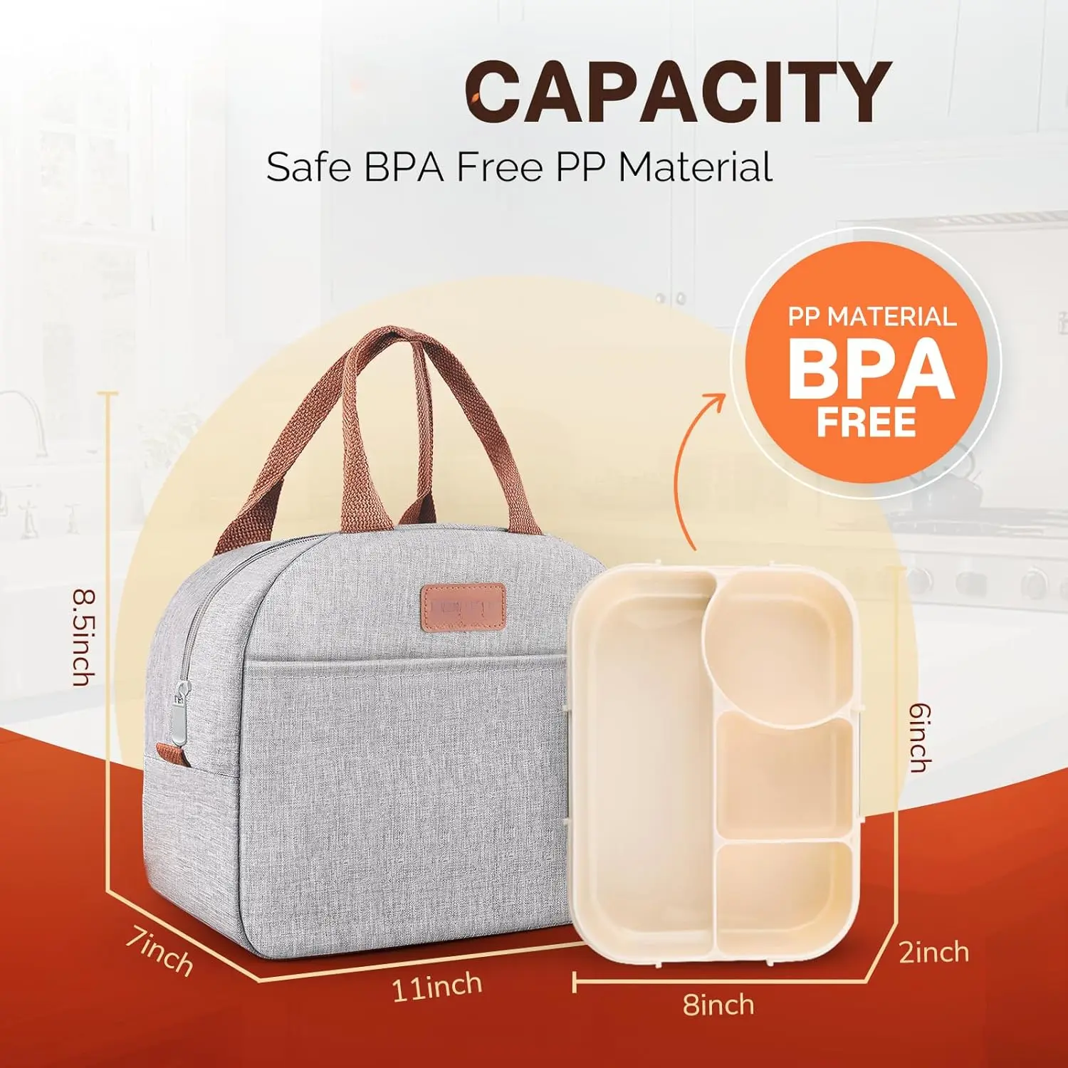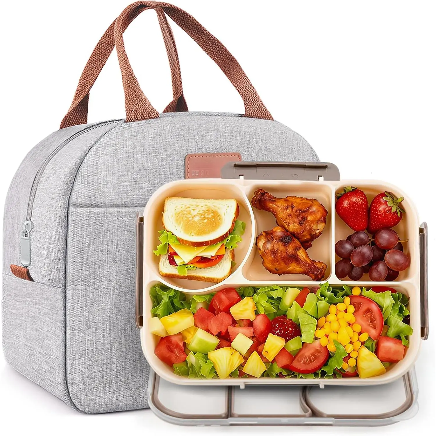Bento Lunch Box Set Bento Box, 4-Compartment Lunch Containers,High Capacity Lunch Tote Bags for Work, Travel, Outdoor (Grey)