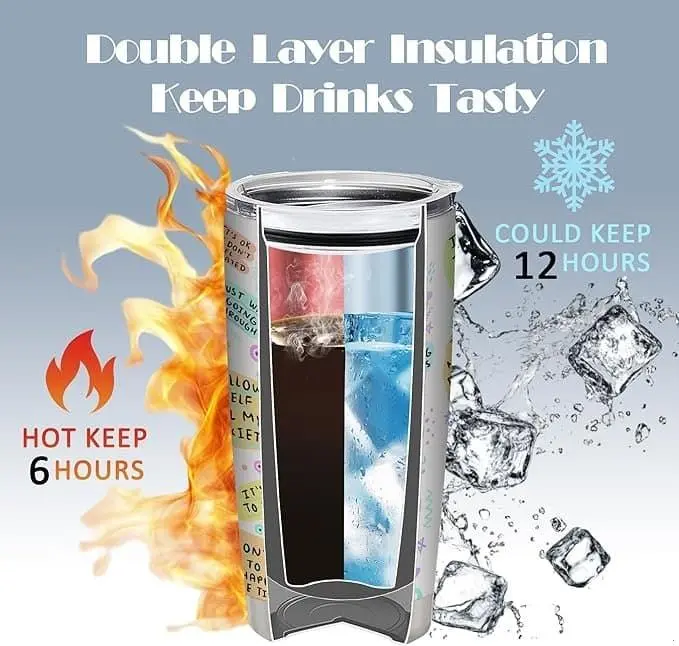 ·TEMPERATURE CONTROL: This cup features double-wall insulation technology to keep your favorite drinks hot for up to 6 hours and cold for up to 12 hours. Its 20oz capacity can fit any beverage, with enough room for ice. Keep your drinks at the perfect temperature for longer with our tumbler.