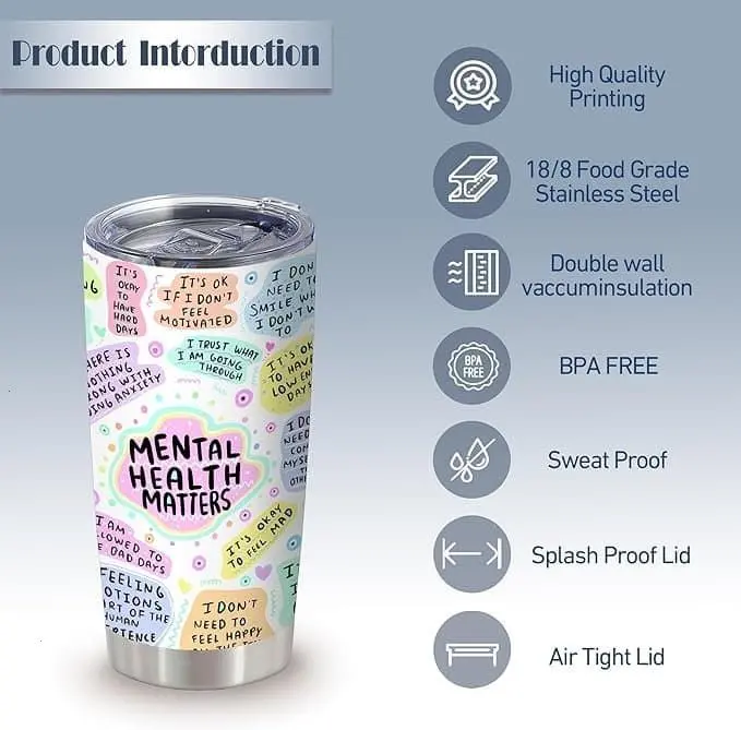 5. My Mental Breakdown Cup,Positive Daily Affirmations Cup,Mental Health Awareness,Inspirational, Motivational Gifts for Women, Insulated Stainless Steel Double Wall Vacuum Tumblers with Lid 20OZ