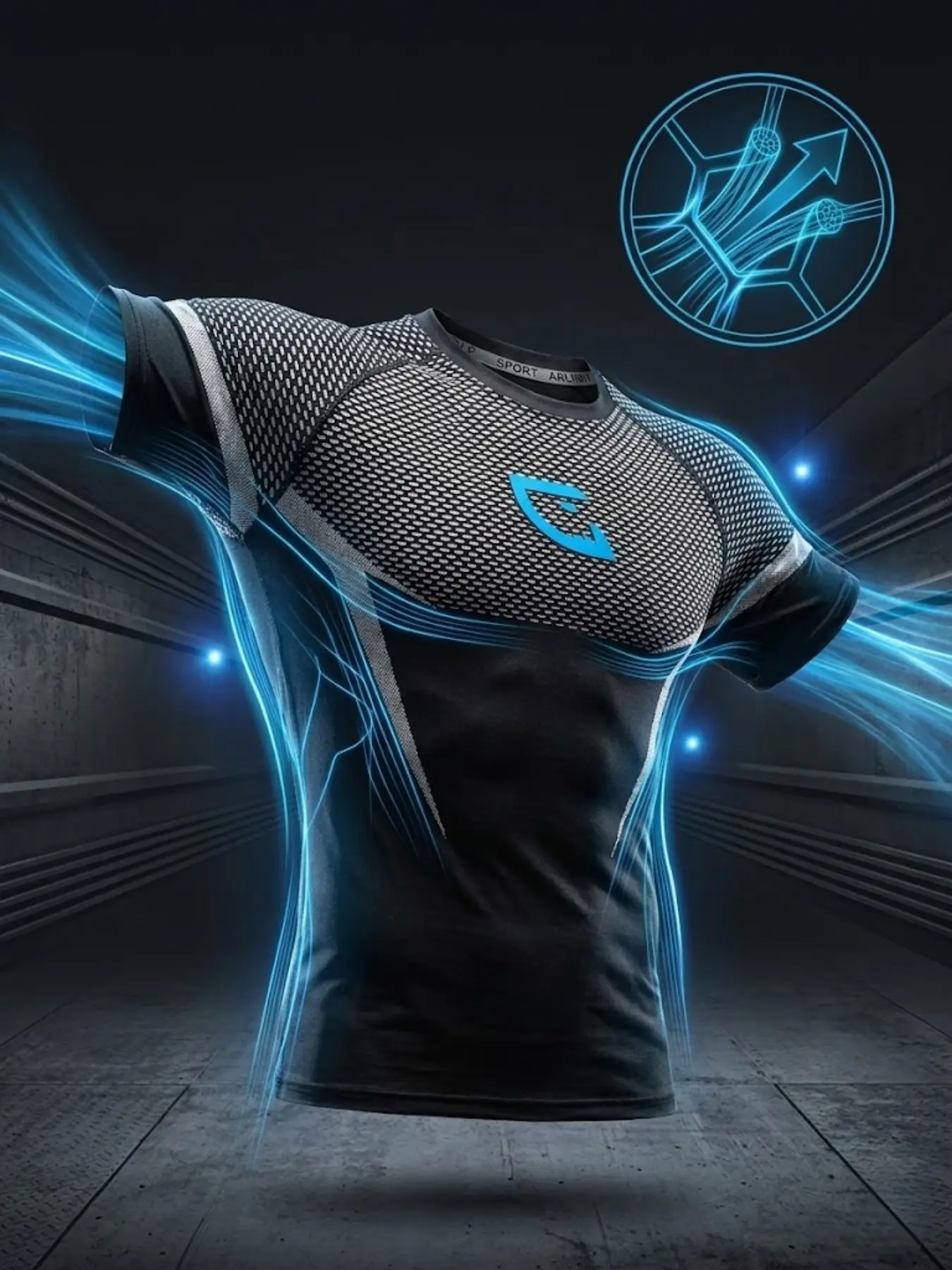 Men's Fitness Sport T-Shirt, Trendy Athletic Style, 10x Stretch, Quick Dry, Sweat-Wicking, Ideal for Gym Training, Men's Workout Wear