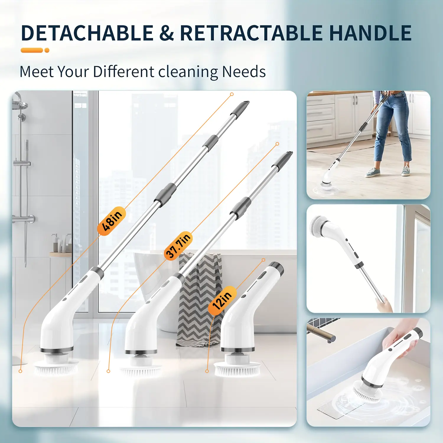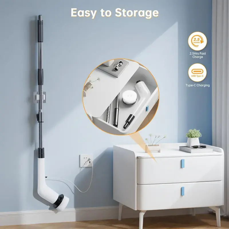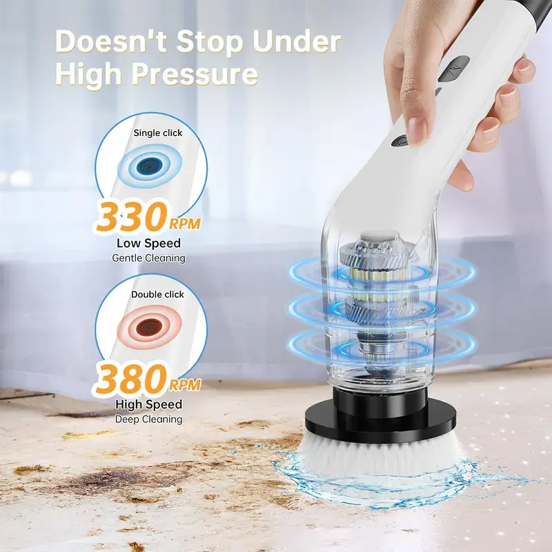 ·High Speed (360 RPM) – power through tough stains with a single click.The extendable handle lets you reach high corners or scrub floors without bending, climbing, or straining.