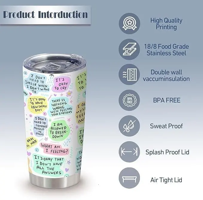 5. 20 Oz Stainless Steel Insulated Travel Tumbler, My Mental Health Breakdown, Positive Daily Affirmation Gift for Women