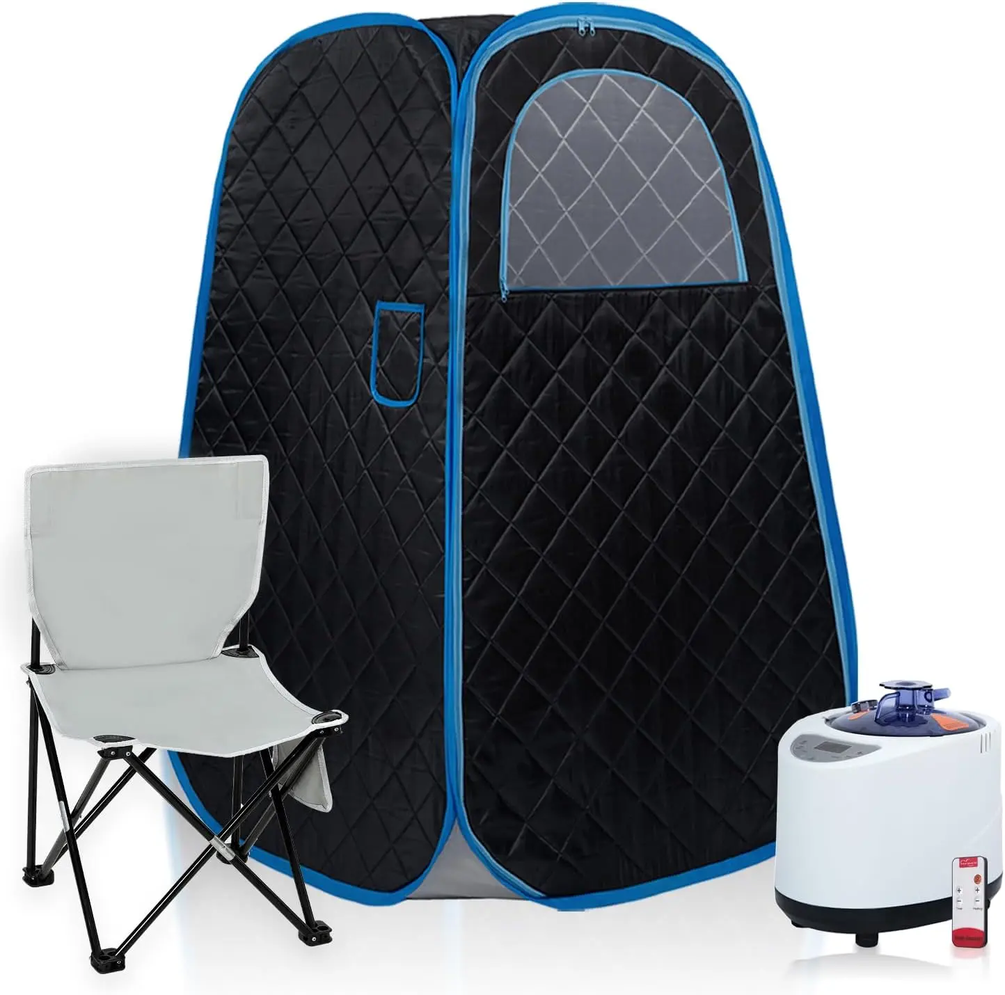 The full body enclosed design helps create a comfortable steam sauna space while still keeping the unit compact enough for everyday indoor use. A breathable viewing window, handy side pocket, and double-pull zipper improve convenience during sessions. The included folding chair offers comfortable seated use, and the waterproof fabric helps keep warmth inside while supporting a more comfortable sauna experience.