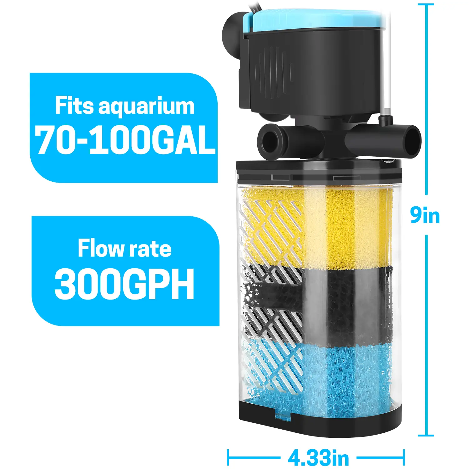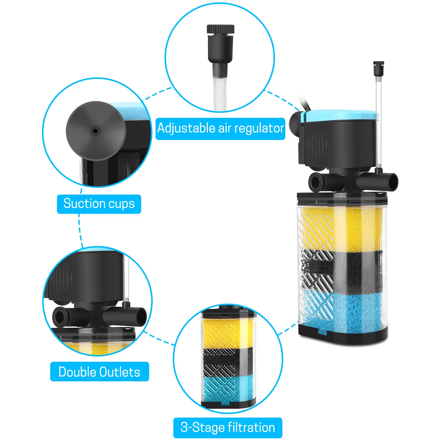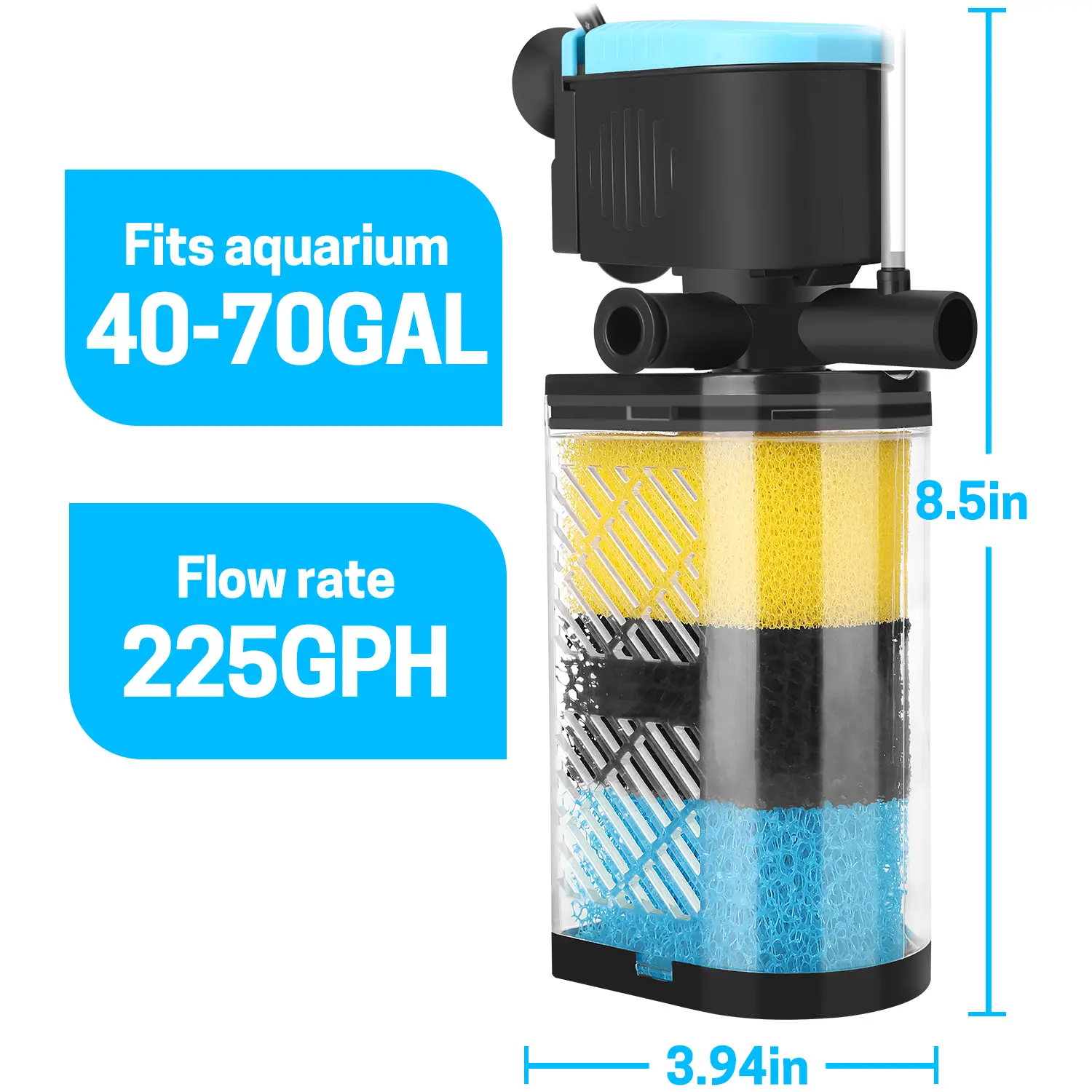 Filter 3-Stage in-Tank Filter Internal Fish Tank Filter Turtle Filter for 10-100 Gallon Fish Tanks with Dual Water Outlet & Aeration aquarium filter multiple function Aquarium Interna Turtle Tank Filters Submersible Internal