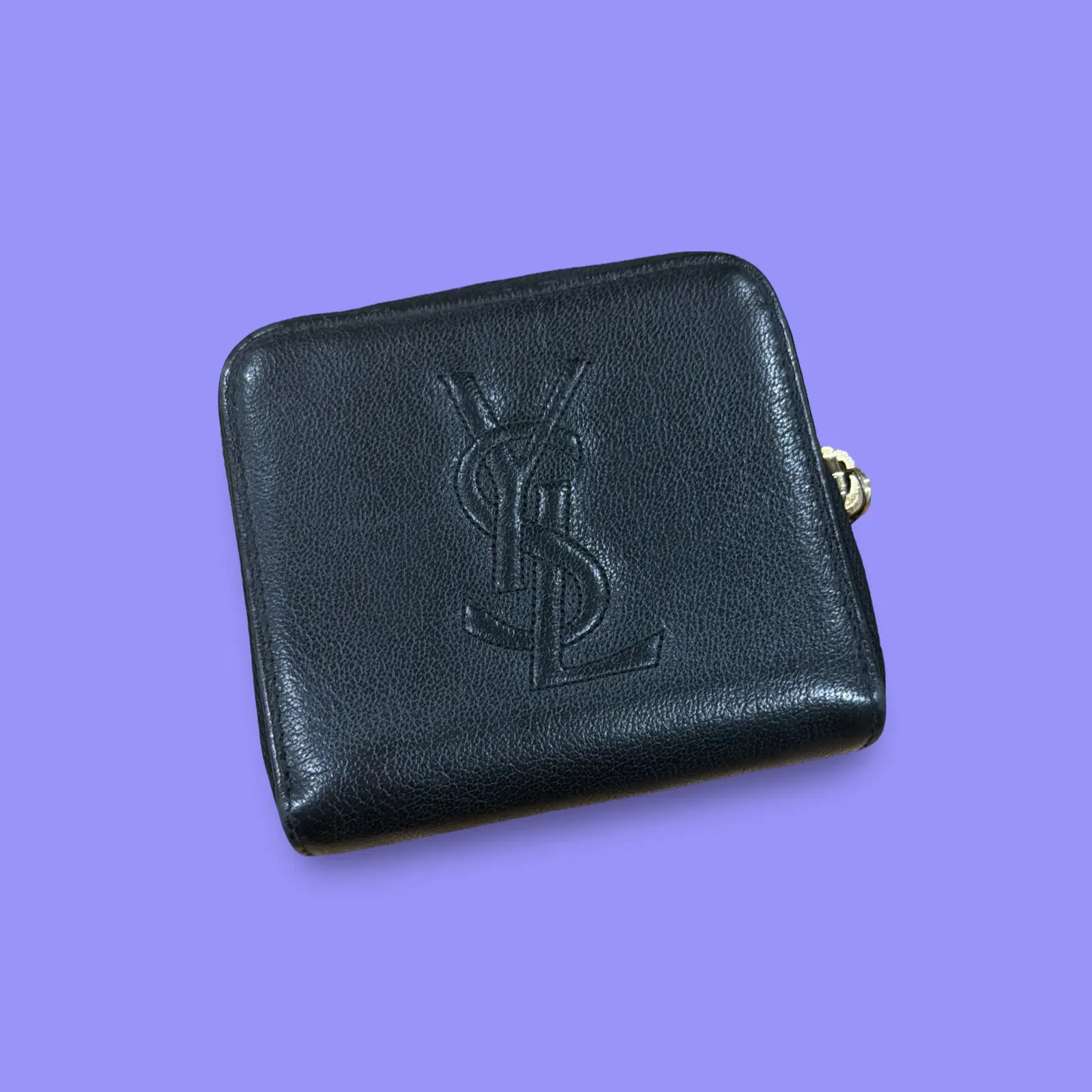 Pre-Owned YSL Belle de Jour Zip Around French Wallet Leather Compact features: