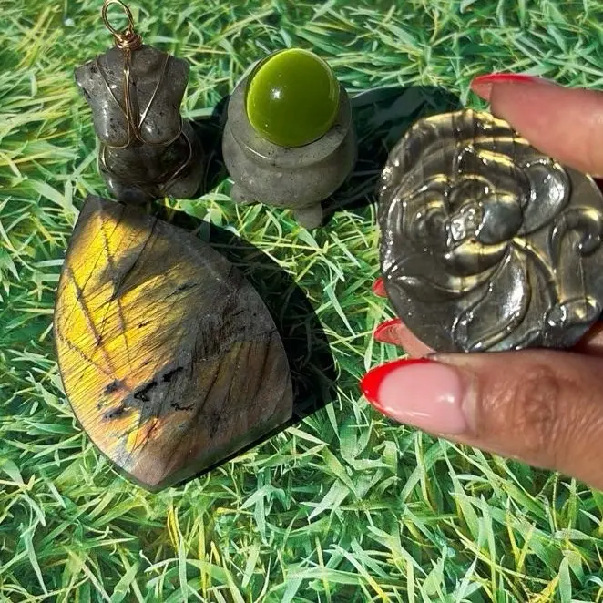 ·Key Features: Labradorite flame carving with Natural flashy iridescent hues.