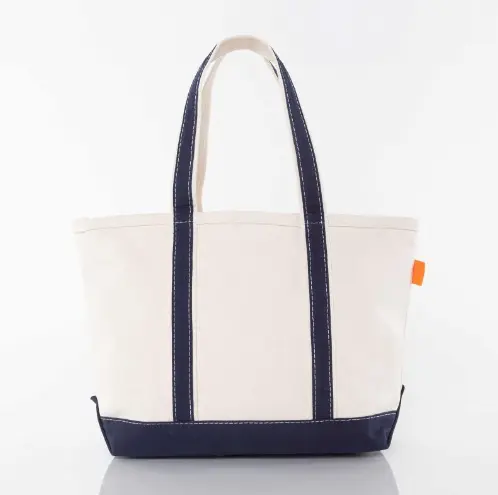 The Medium Classic Tote: versatile for beach, park, or boat trips. Stylish trim, top zip, outer pocket. A timeless gift or event takeaway!
