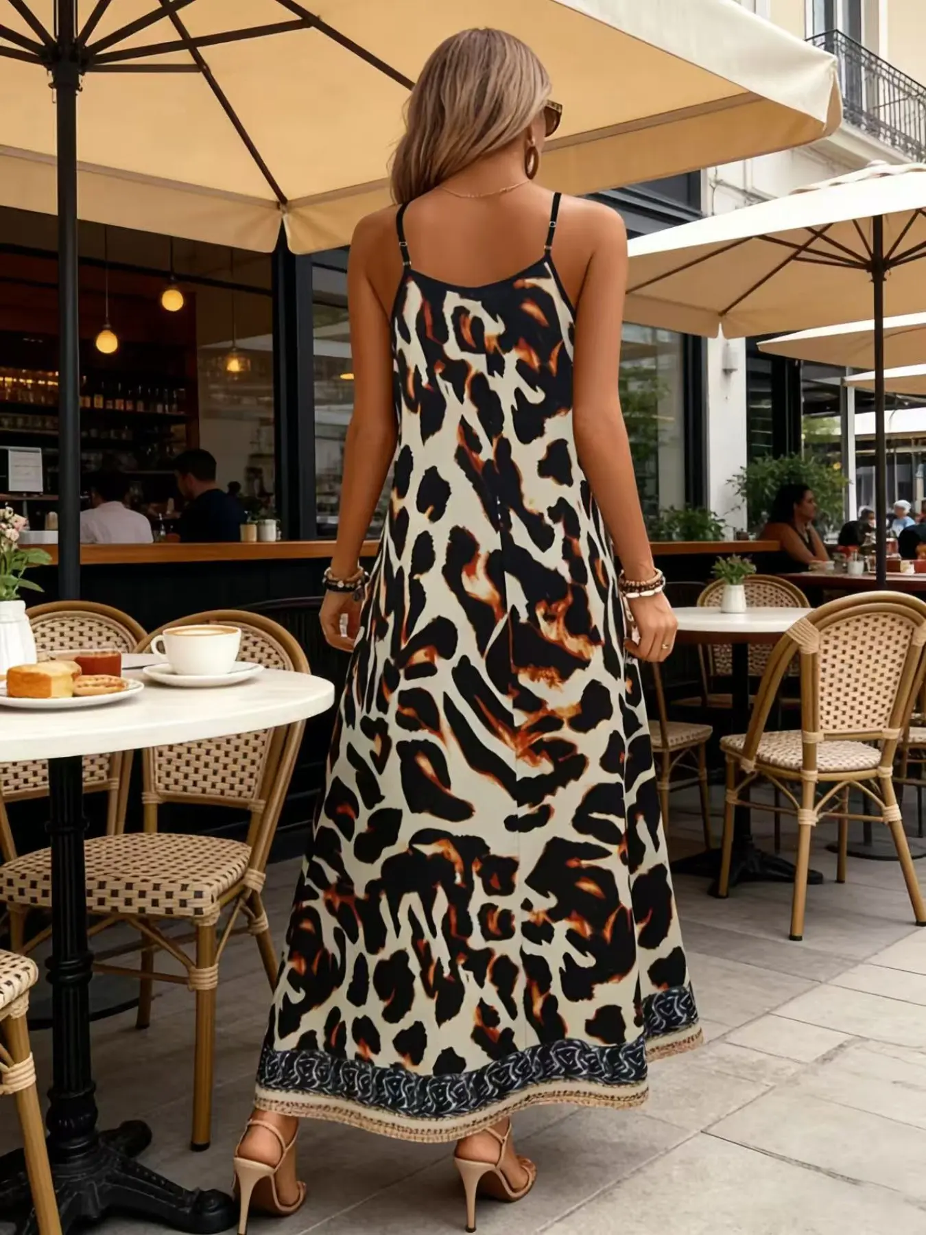 European and American Style Leopard Print Halter Long Dress, Summer New Loose Fit Conceal Fat Vacation Dress, Trendy Fashion Apparel