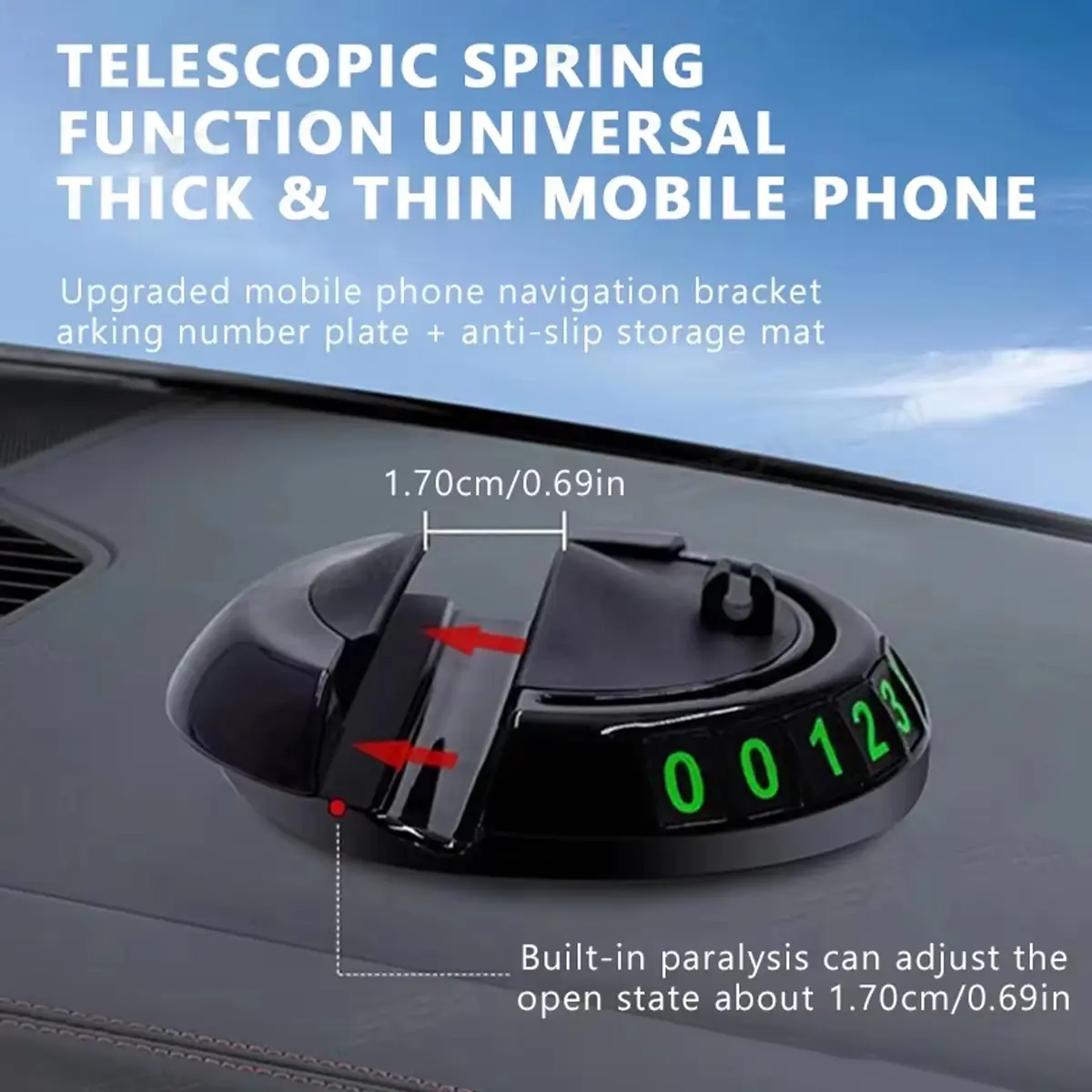 【Multi-Functionality】: Combines parking sign, dashboard storage, phone holder, sunglasses stand, and key tray.