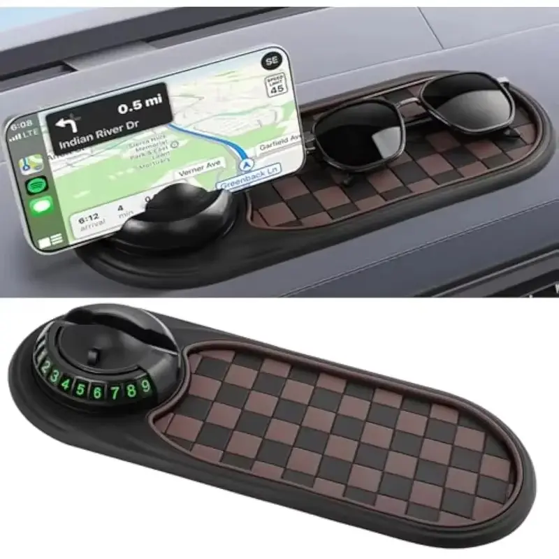 Car Non-Slip Mat, Multi-Function Parking Sign, Dashboard Storage, Phone Holder, Sunglasses Stand, Rotatable Key Tray, Universal Design