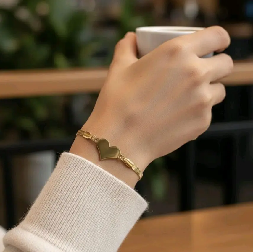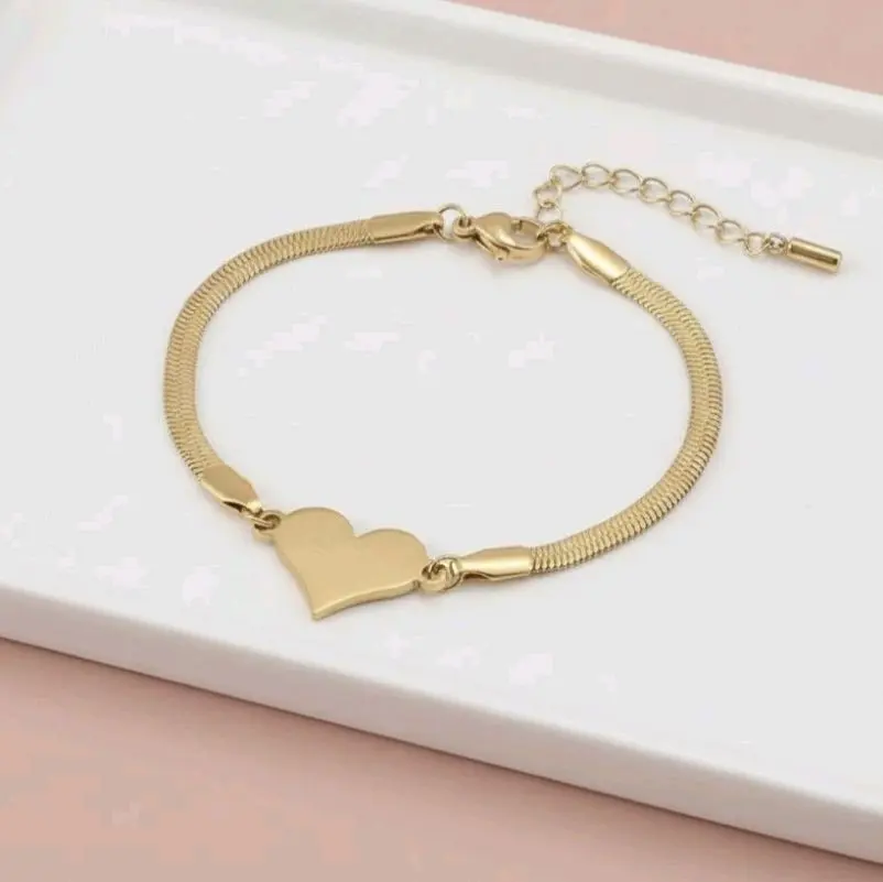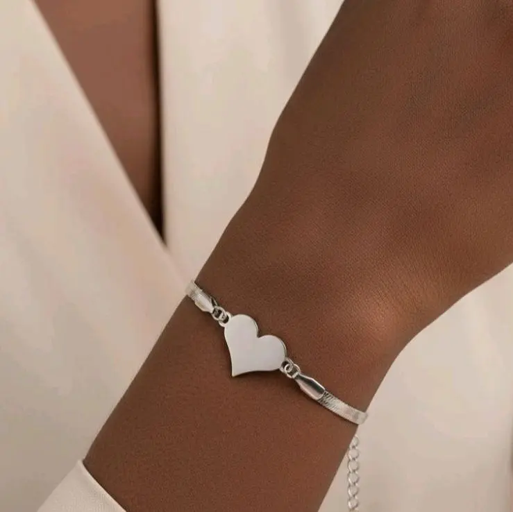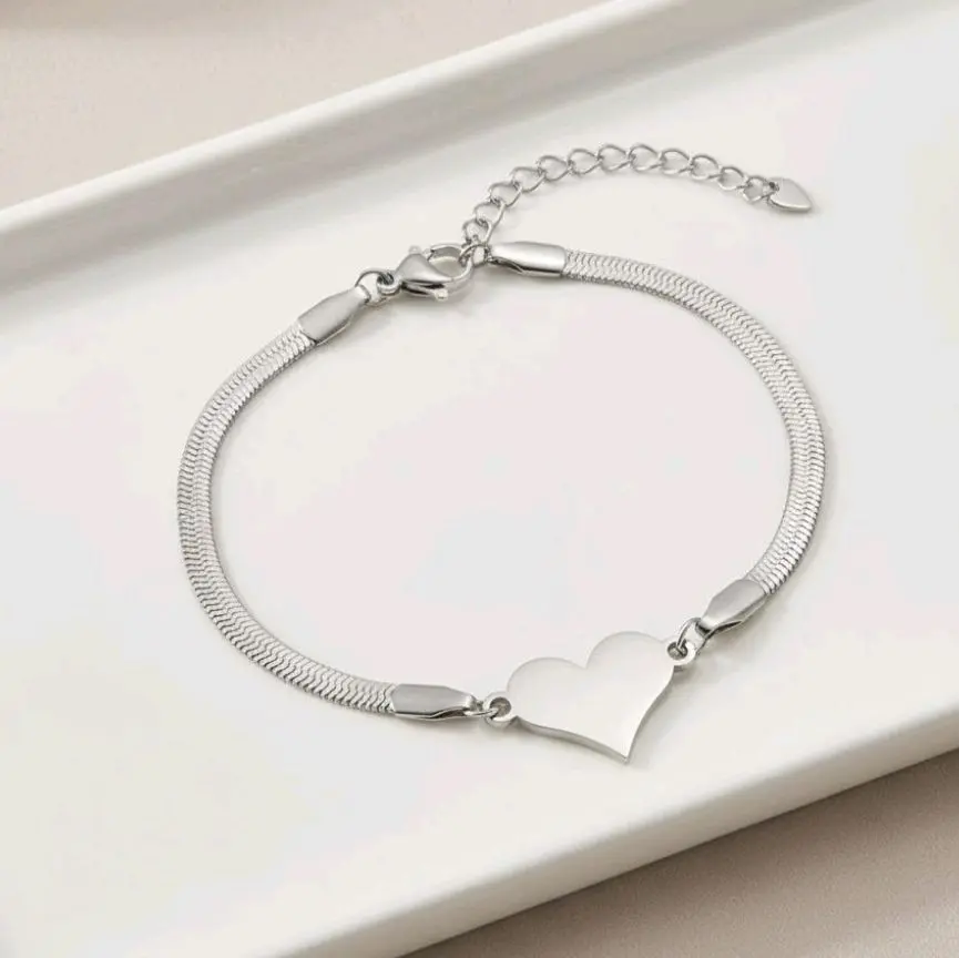 🌟 Heart Charm on Snake Style Bracelet - Elegant Silver Tone Jewelry for Women