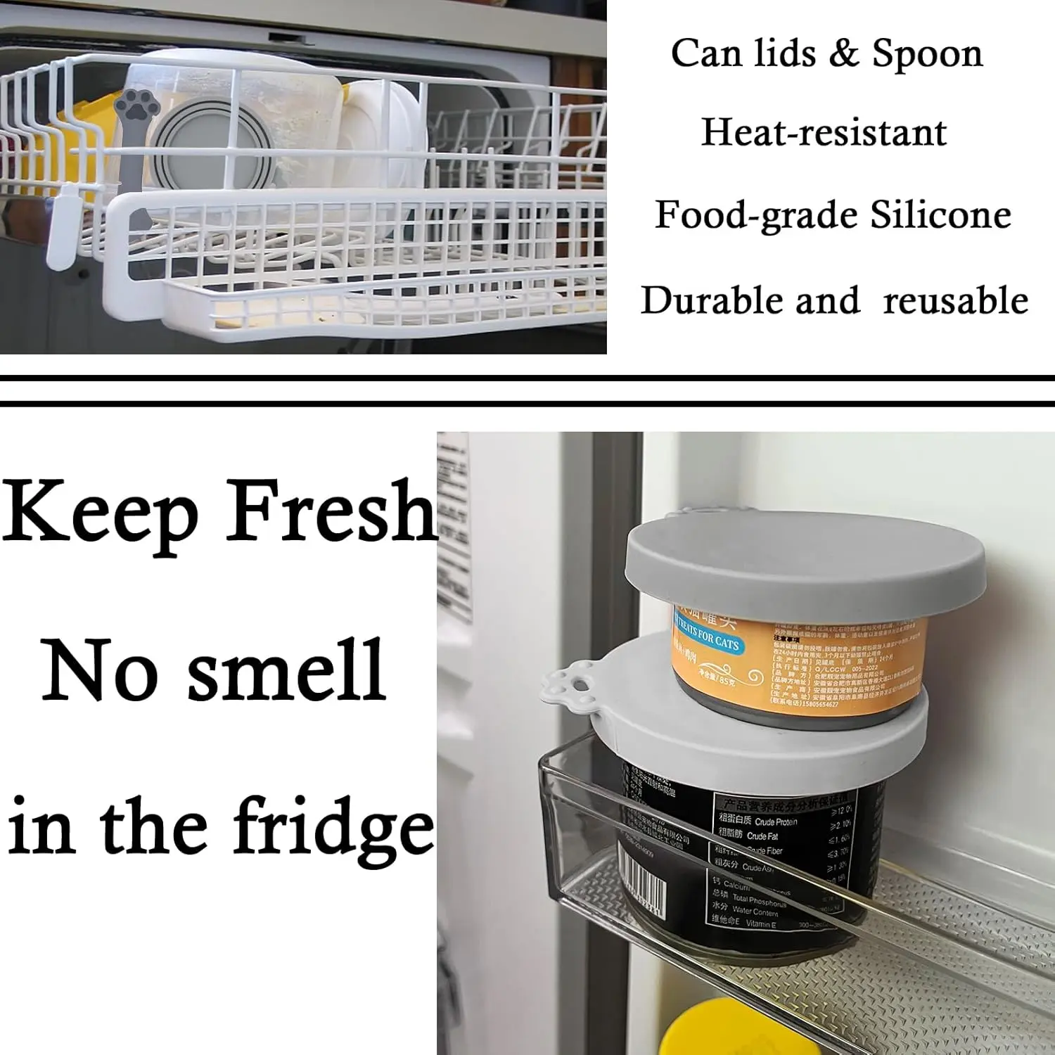 Cat Food Can Spoons & Can Lids | 4 Pcs | Multi-Function Can Opener | Silicone Pet Food Can Covers | Stainless Steel Wet Food Spoon for Cats and Dogs(Grey),Hand Tools Kits