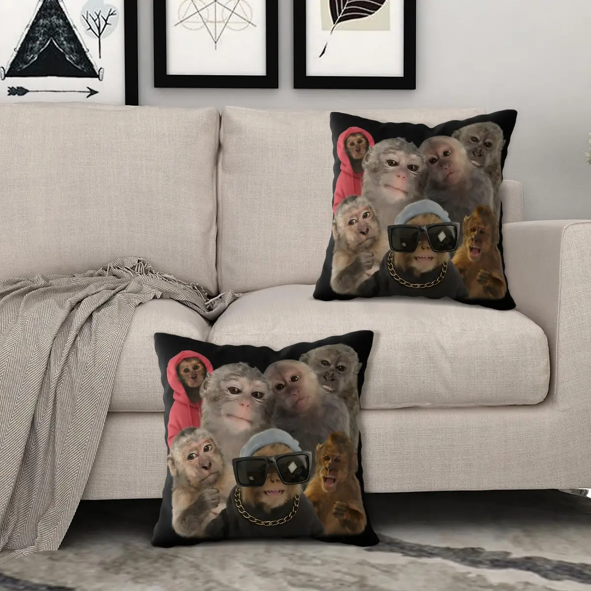 Trending Monkey Throw Pillow, Warm and Whimsical Fun Home Decor Checkered Accent Pillow, for Sofa Pillowcases and Bedding Home Decor Cushion