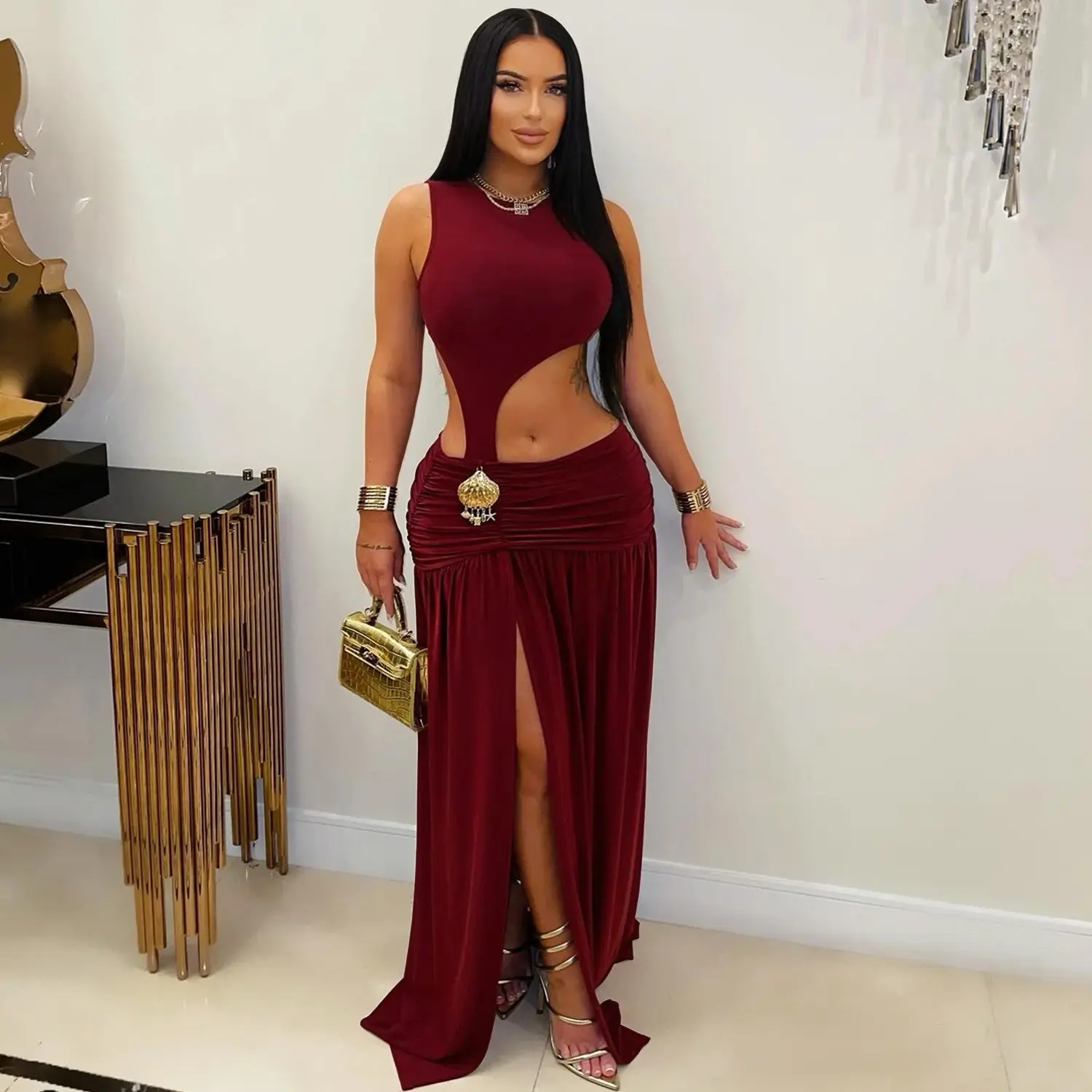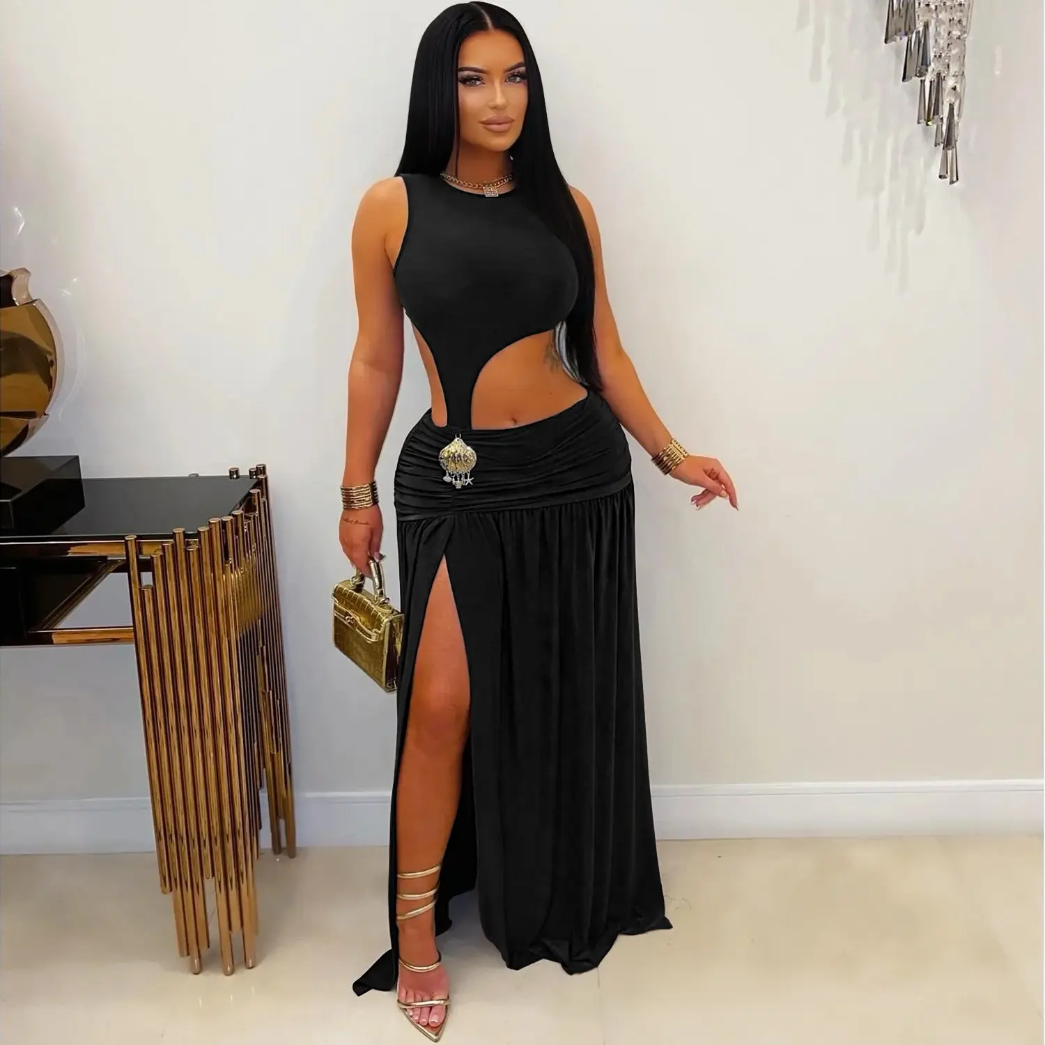 Fashion Women's Sexy Solid Color Sleeveless Crop Open Fork Dress