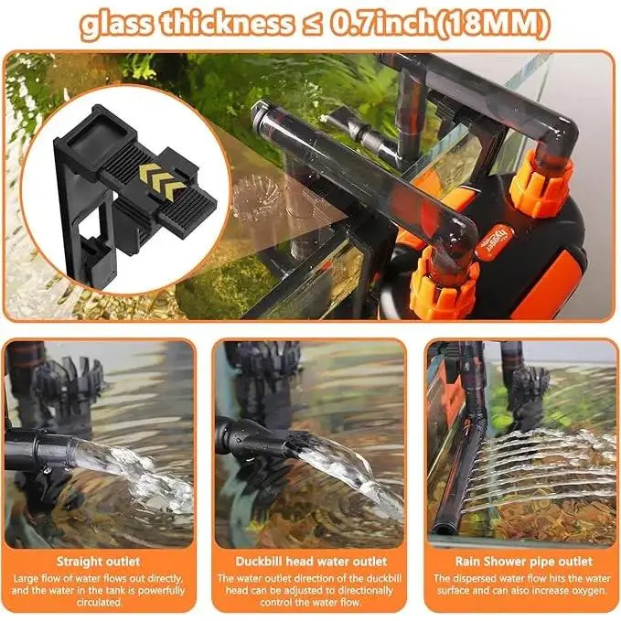 Hang-On-Back Canister Aquarium Filter,No Dry Burning Quiet Fish Tank Filter with Duckbill Nozzle Shower Pipe Outlet Oil Skimmer Adjustable Water Flow 3 Types Filter Media(5W/6W/7W/8W fo 10-60 gal)