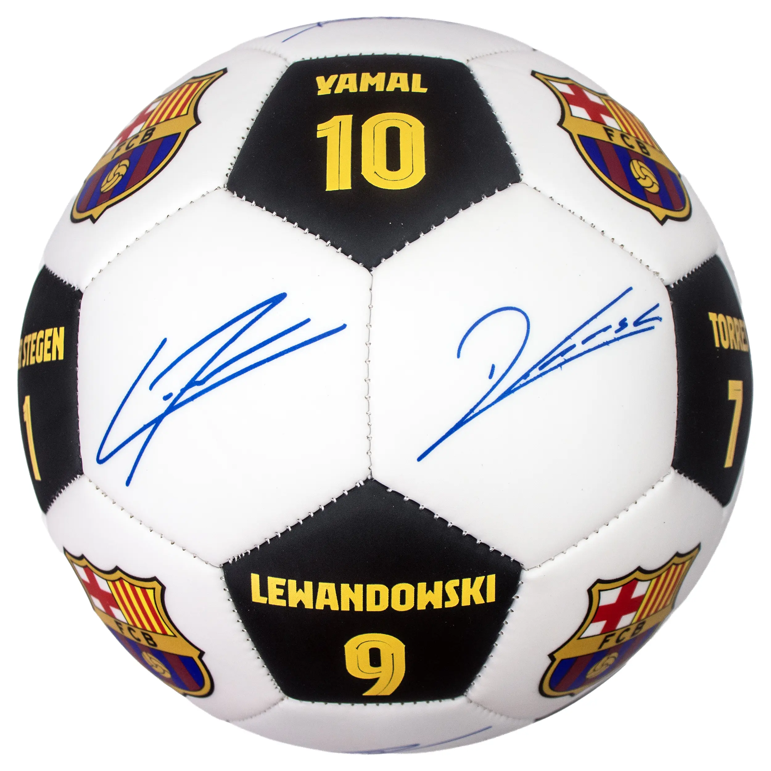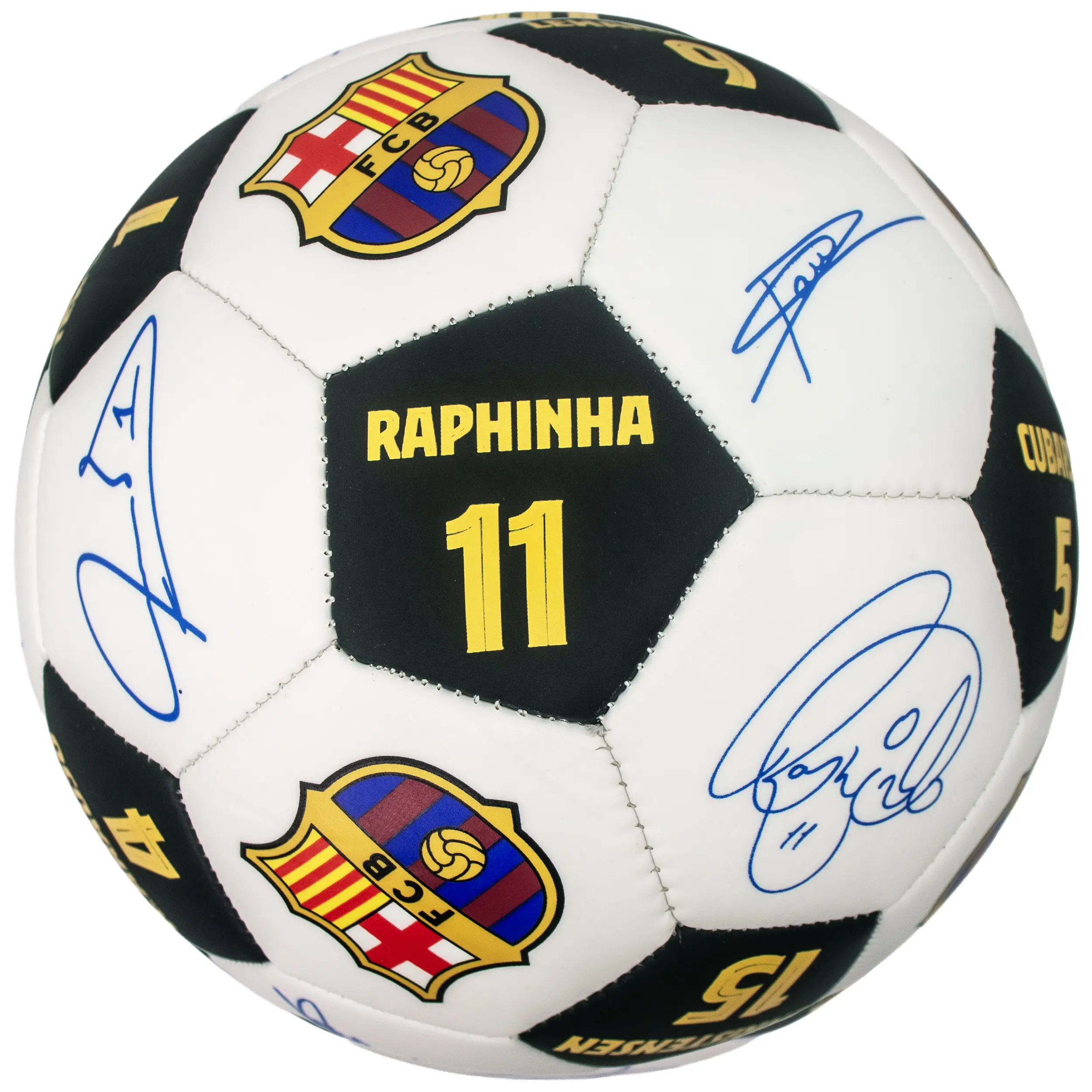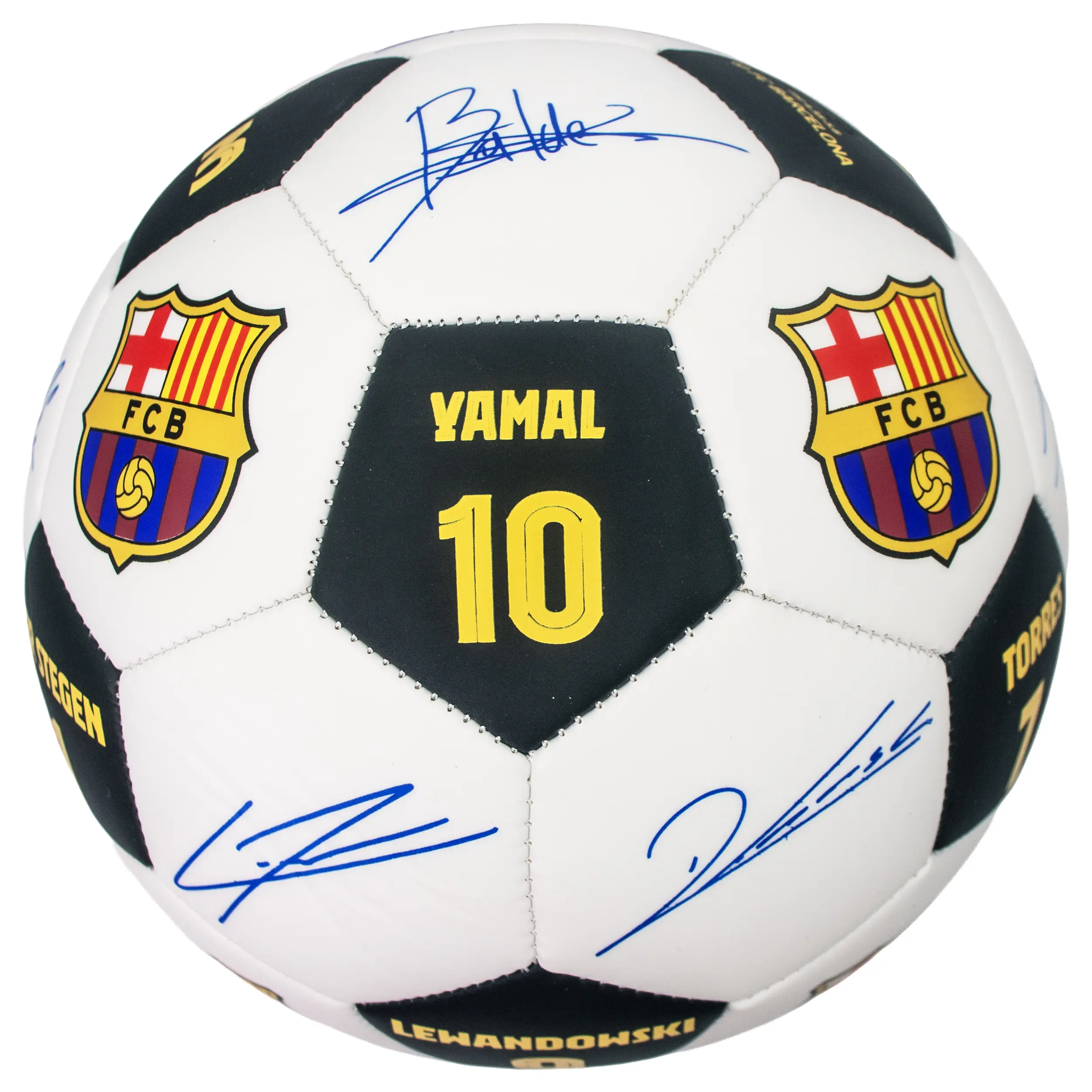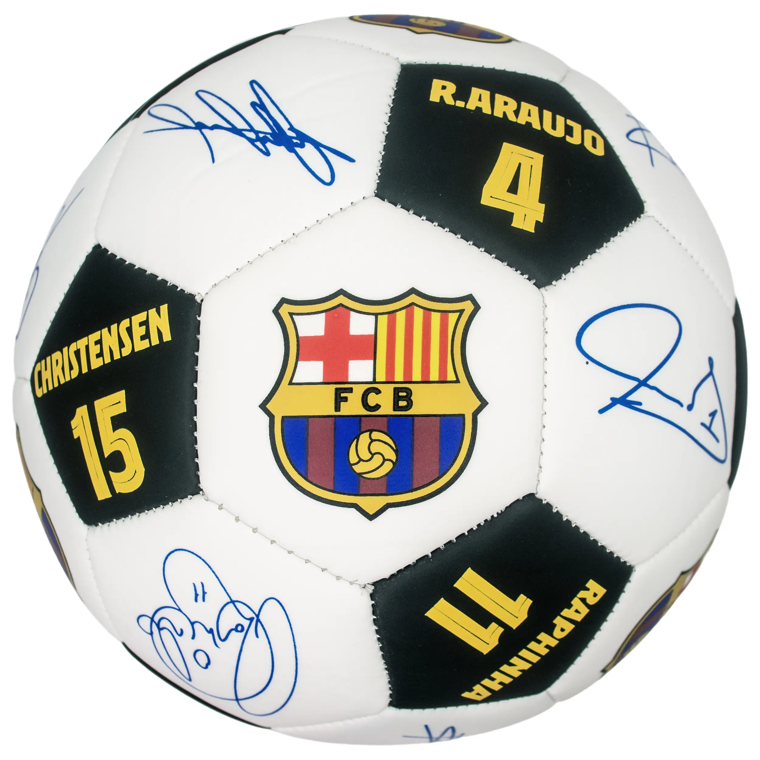 Show your Barça pride on and off the field with the Officially Licensed FC Barcelona "Signature" Soccer Ball. Designed with a classic black and white panel look and featuring printed player names, numbers, and signature-style artwork, this ball delivers a premium fan experience—perfect for training, casual games, or display.
