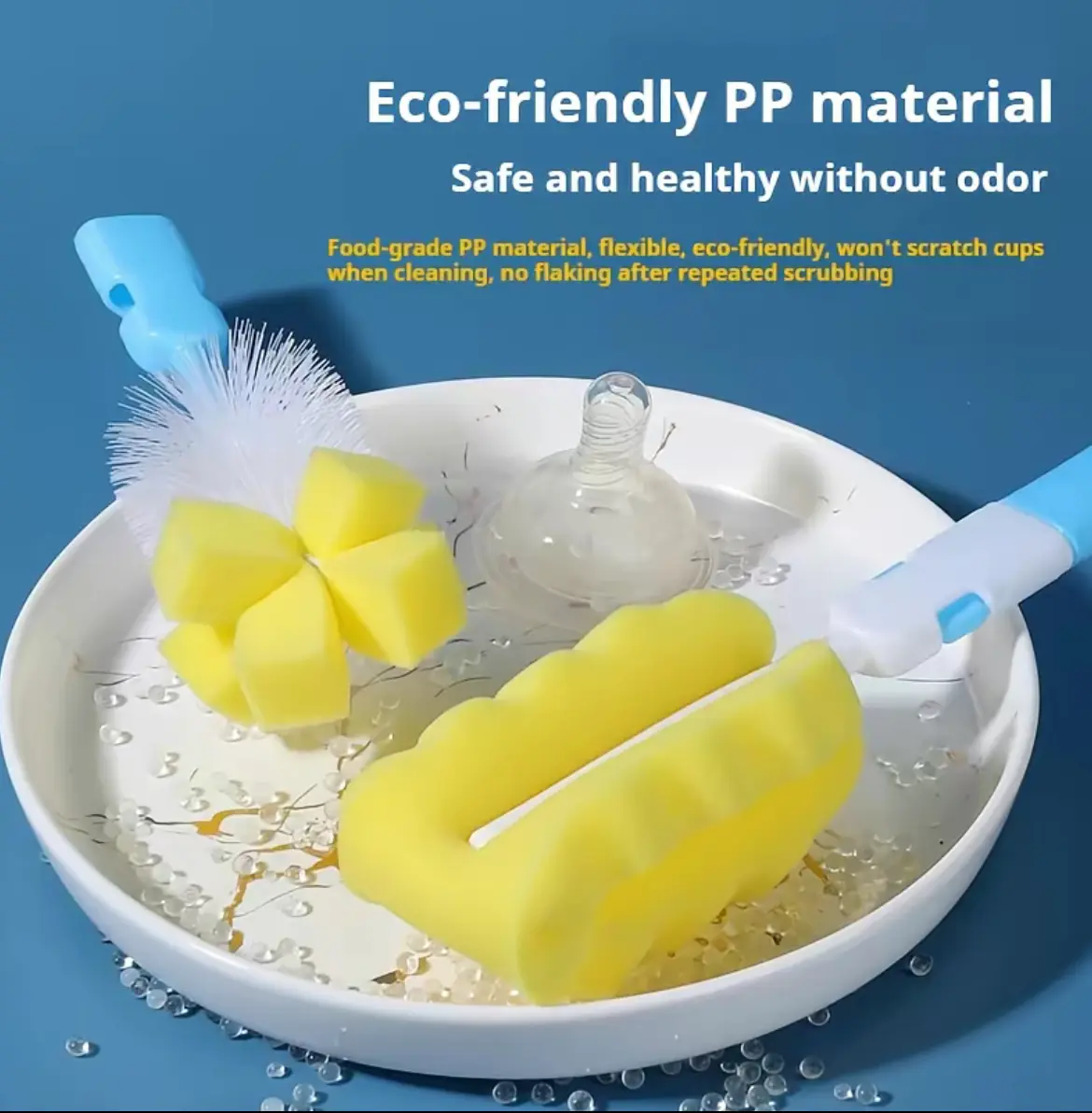 Kid Keeper Baby Bottle Brush Set – Nylon Sponge & Scrubbing Brush for Cleaning Bottles, Blue