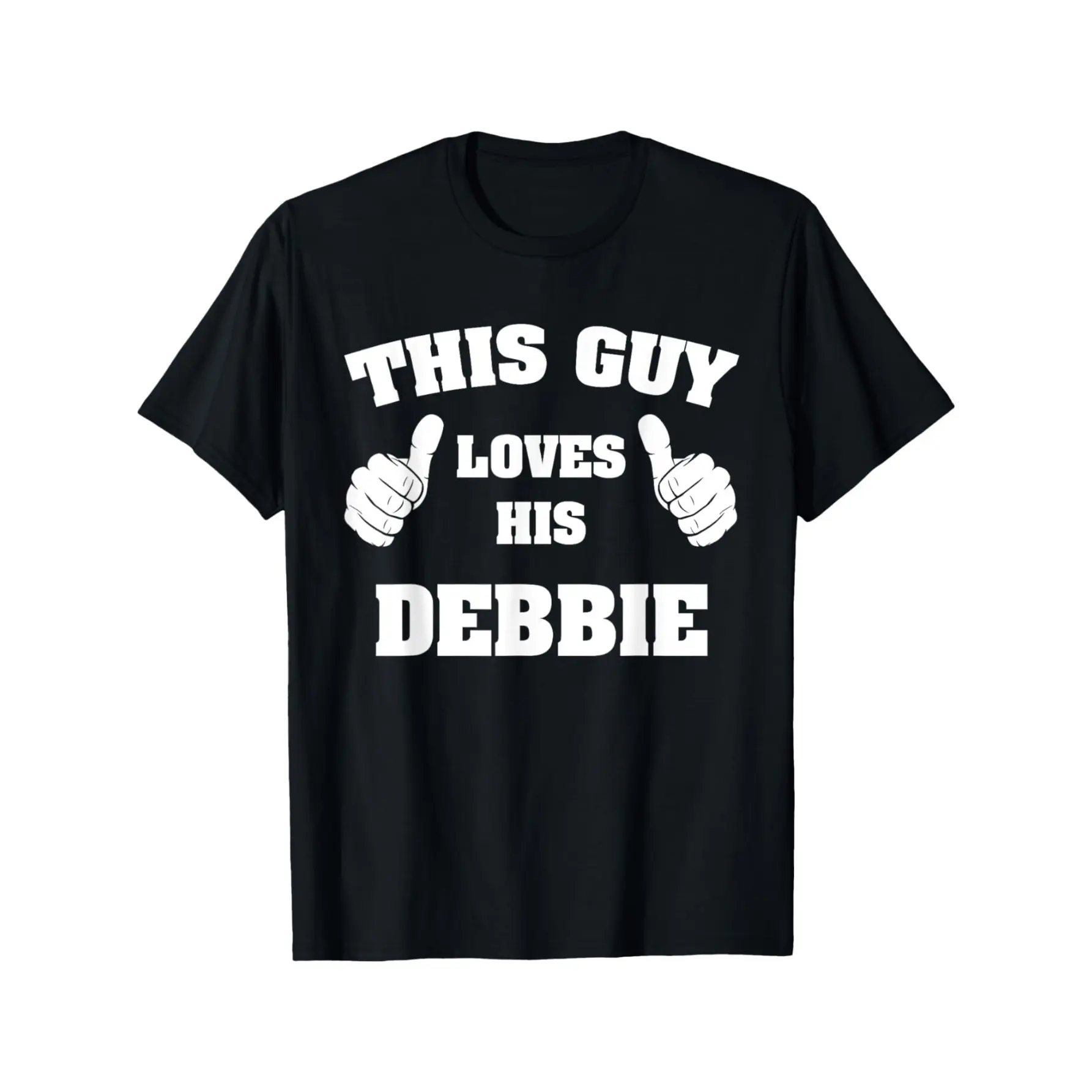 Men'S This Guy Loves His Debbie White T-Shirt - Funny Thumbs Up & Debbie Name Print, Casual Round Neck Short Sleeve Tee for Gifts, Boyfriend, Husband, Debbie Fans - Machine Washable Fit