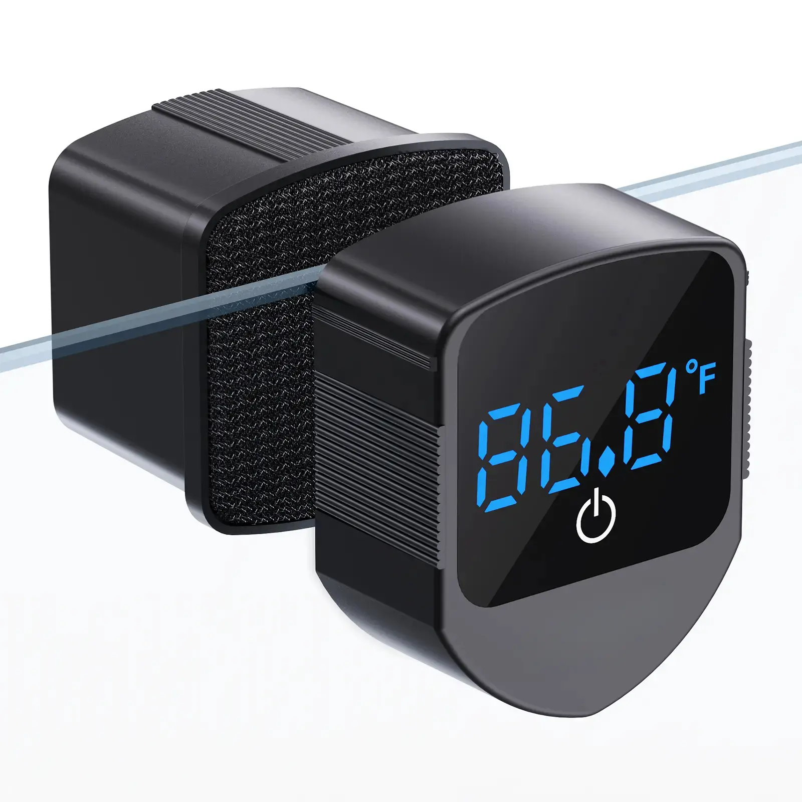 2 in 1 Aquarium Magnetic Cleaner with Digital Thermometer for Glass Tanks 1-30 Gallons Compact Efficient Cleaning Tool for Aquariums Home Water Temperature Monitoring Fish Tank Cleaner