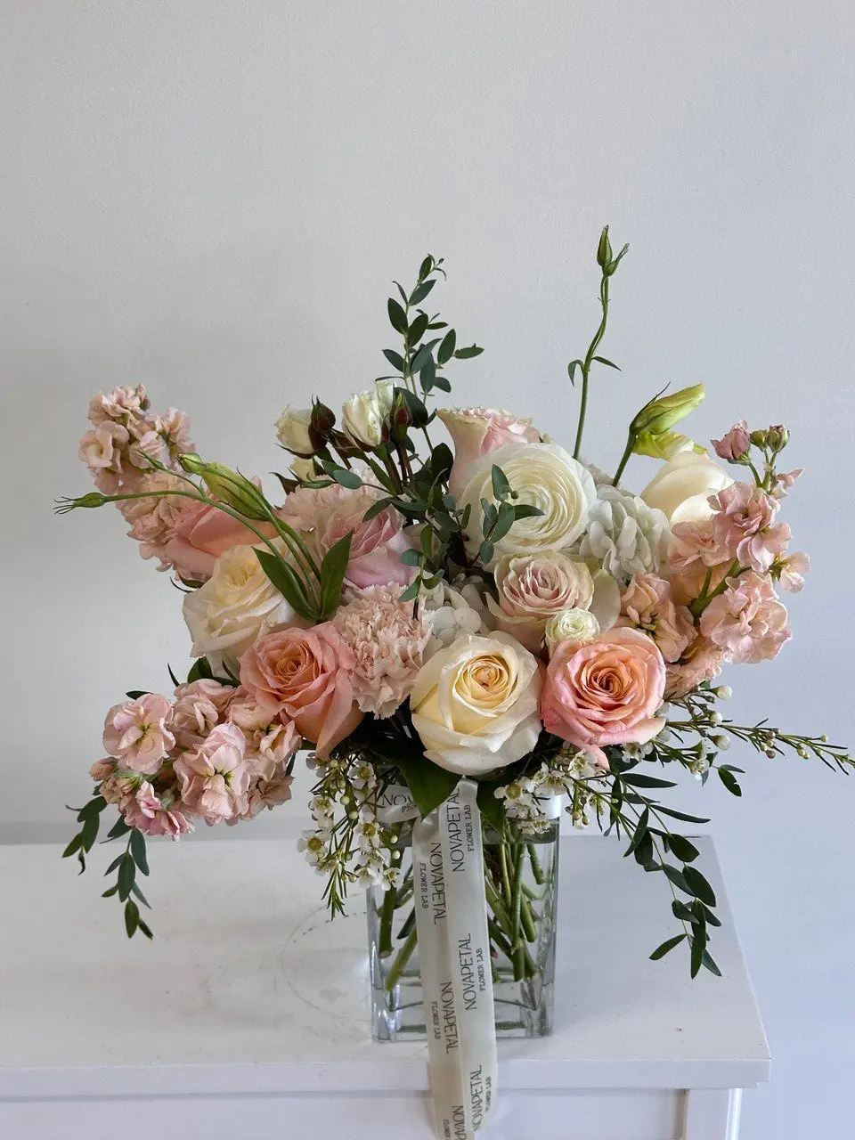 Our most-loved subscription arrangement — perfectly balanced, full, and effortlessly elegant. Designed to elevate Manhattan dining tables, Brooklyn living rooms, and every everyday moment in between. This is the size most New Yorkers choose for their weekly or bi-weekly flower delivery, and the truest expression of the Novapetal aesthetic. The ideal size for your first NYC flower subscription.