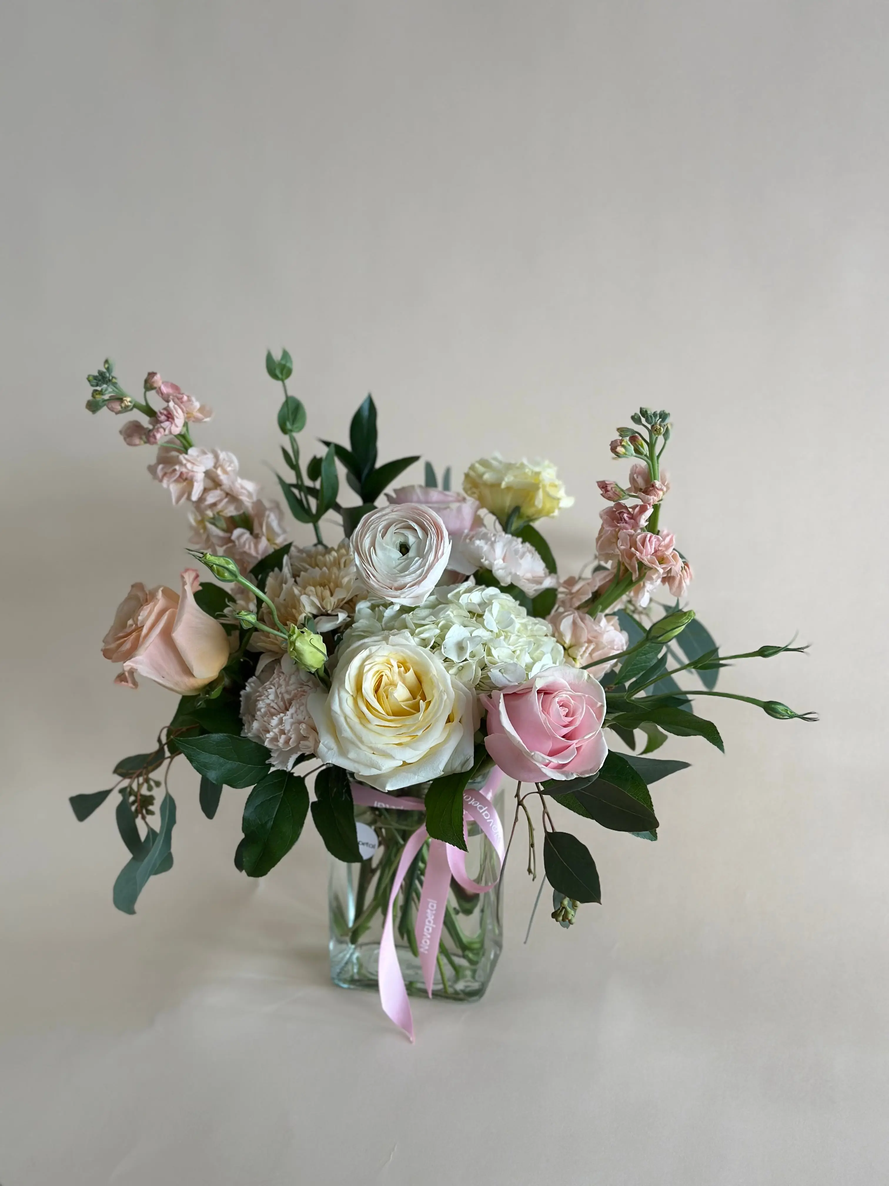 Each arrangement is uniquely designed by our floral artists using premium seasonal blooms such as peonies, garden roses, ranunculus, tulips, and orchids. No filler flowers — only refined, design-forward compositions.