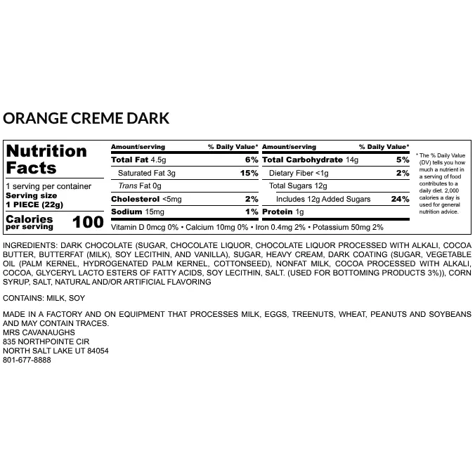 Our Orange Crème Chocolates are made from scratch with thick whipping cream and the finest ingredients, cooked to perfection. We don’t use just-add-water mixes, and you’ll taste the difference in our bright orange flavor and creamy chocolate coating. When you choose Mrs. Cavanaugh’s, you’re choosing the highest quality candy—fresh, delicious dipped orange crèmes.
