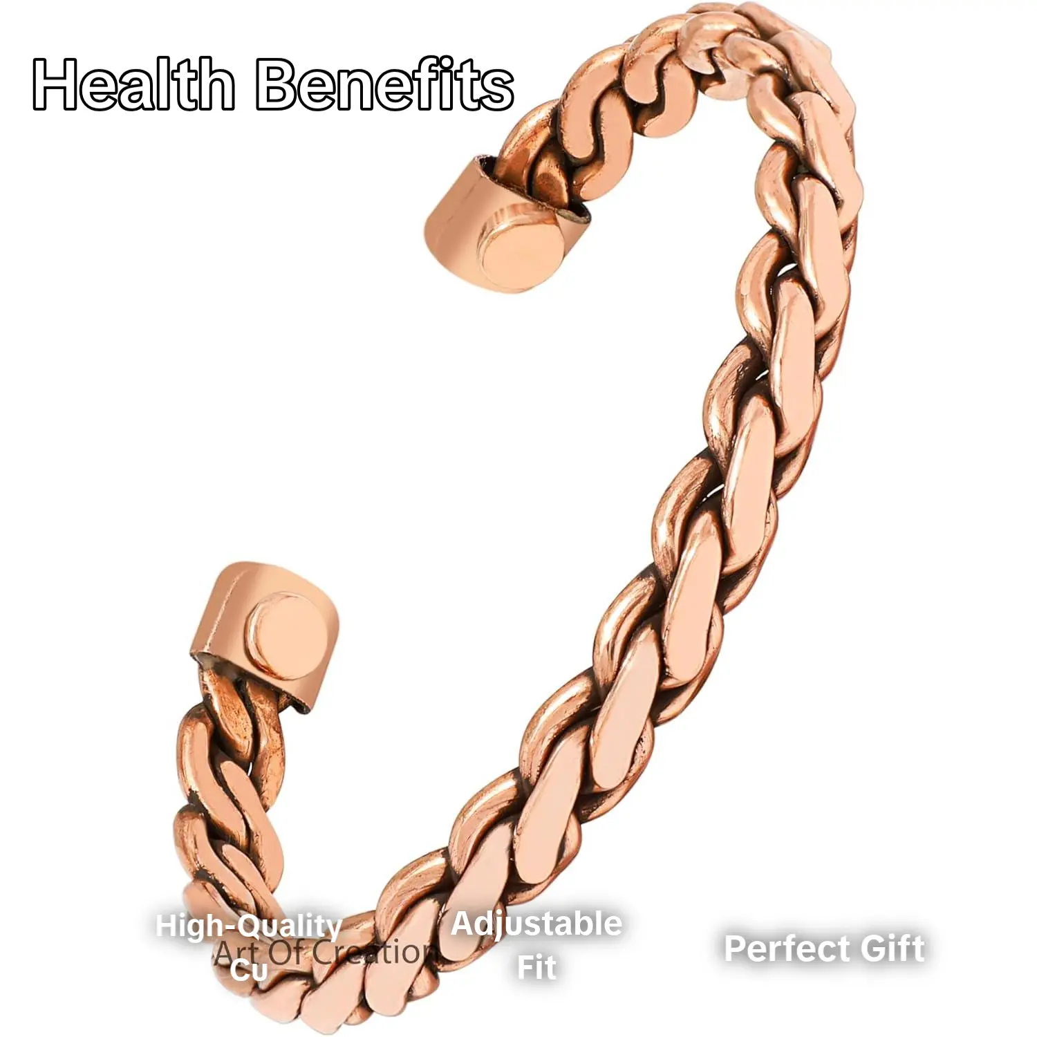 This elegant bracelet enhances your wrists with a bangle-like fit. Made from pure copper, it provides maximum health benefits. It's a gorgeous accessory that suits any occasion.