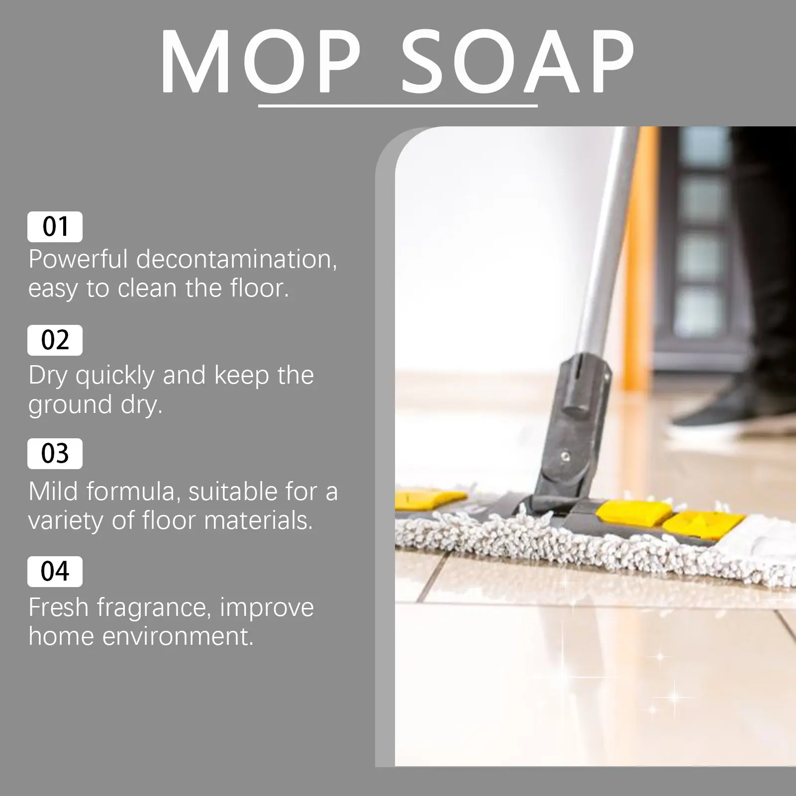 Our floor cleaning detergent contains palm kernel oil amide DEA and citrus extracts. It can effectively remove dirt, grease, and stubborn stains from the floor surface, restoring the floor's original shine. The usage method is very simple: take an appropriate amount of the detergent and dilute it in a mop bucket. Soak the mop in the cleaning solution, and then clean as usual. It can also remove scales and stains, enhancing the cleaning effect.