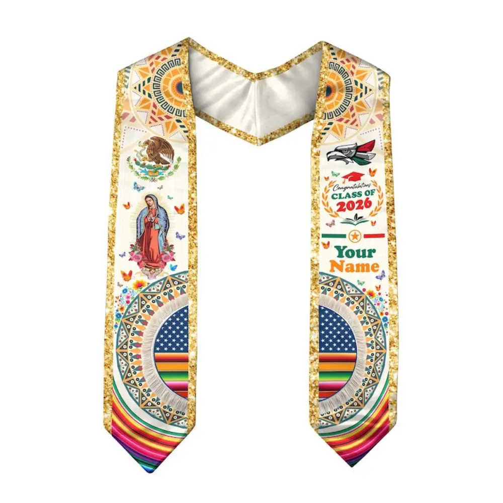 [HOT] Graduation Stole Class of 2026 Printed Sash, Mexican American Flag Style Stole, Custom Name Graduation Gift