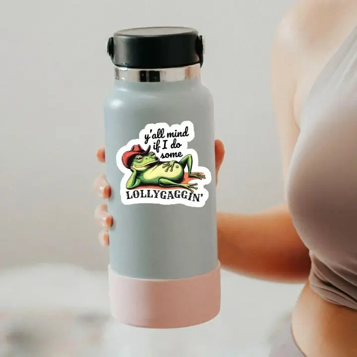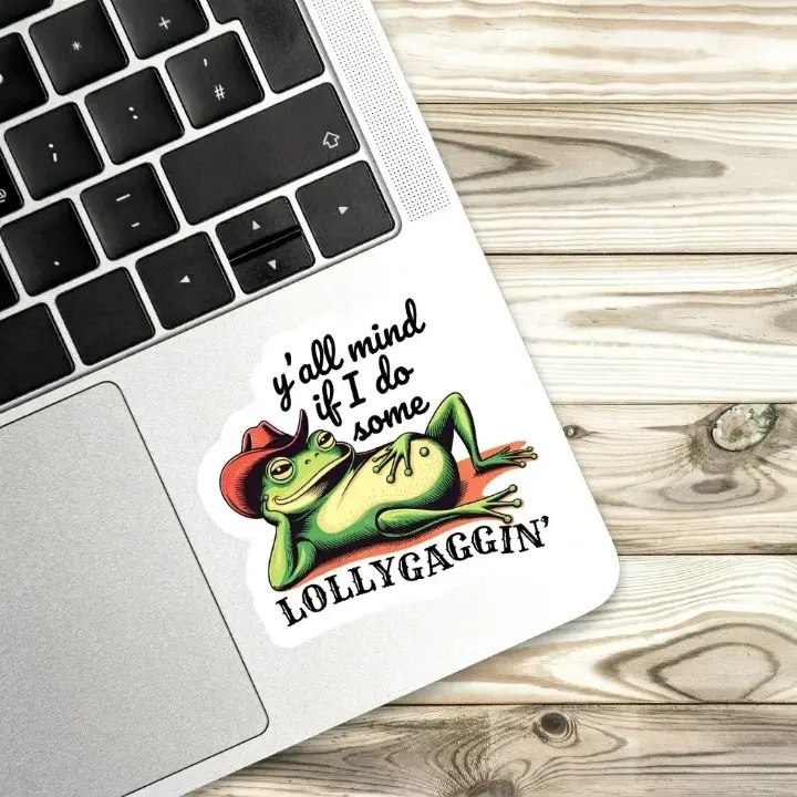Y’all Mind If I Lollygag Frog Sticker, Funny Cowboy Frog Vinyl Decal, Retro Meme Laptop Sticker, Cute Sarcastic Gift