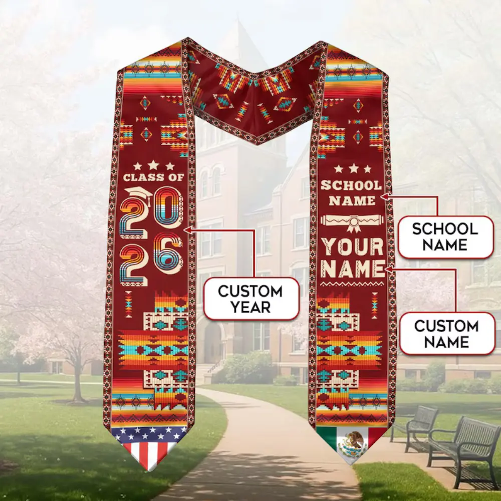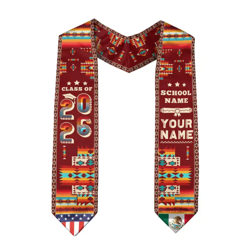 5. [HOT] Graduation Stole Class of 2026 Printed Sash, Mexican American Flag Style Stole, Custom Name Graduation Gift (1)