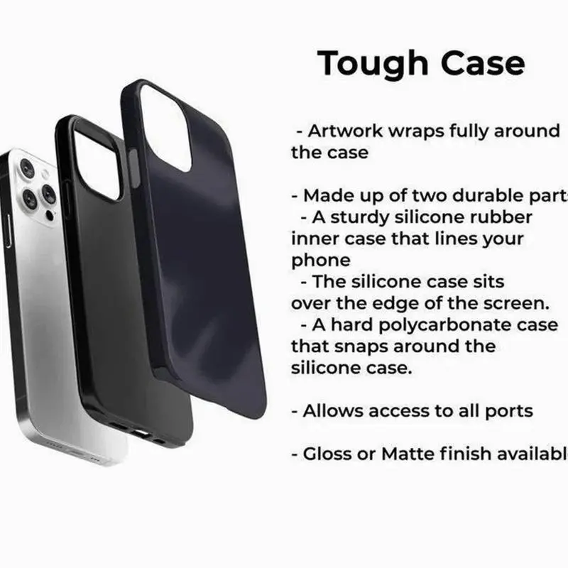 Protect your phone in custom style with this tough phone case. This lightweight phone case is impact-resistant thanks to its TPU lining and Polycarbonate shell. Meanwhile, the interior rubber liner adds an extra layer of protection to your phone for total peace of mind. Compatible with iPhone and Samsung smartphones. Check sizes for all available phone models. (iPhone 17 model now available).