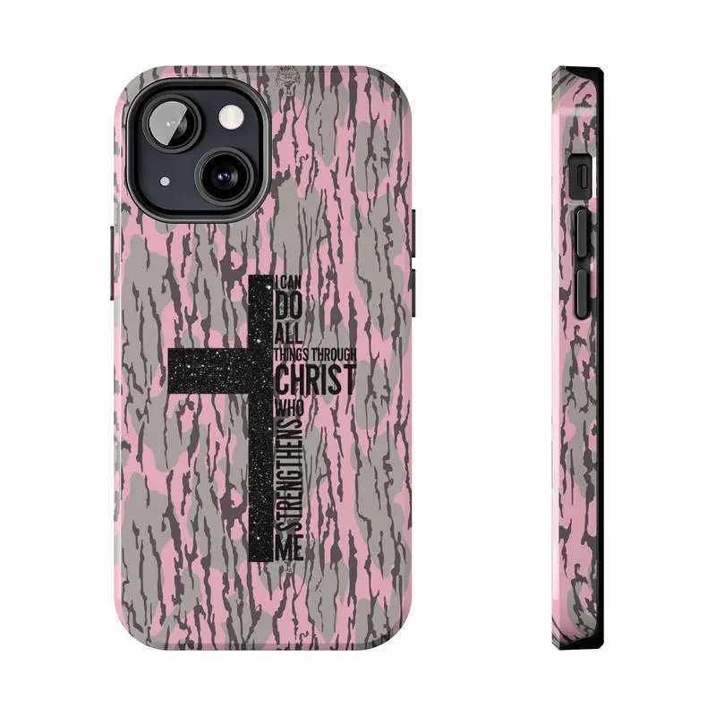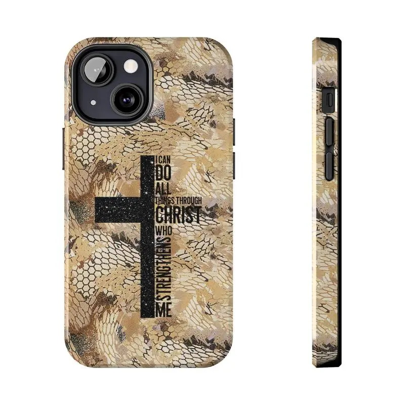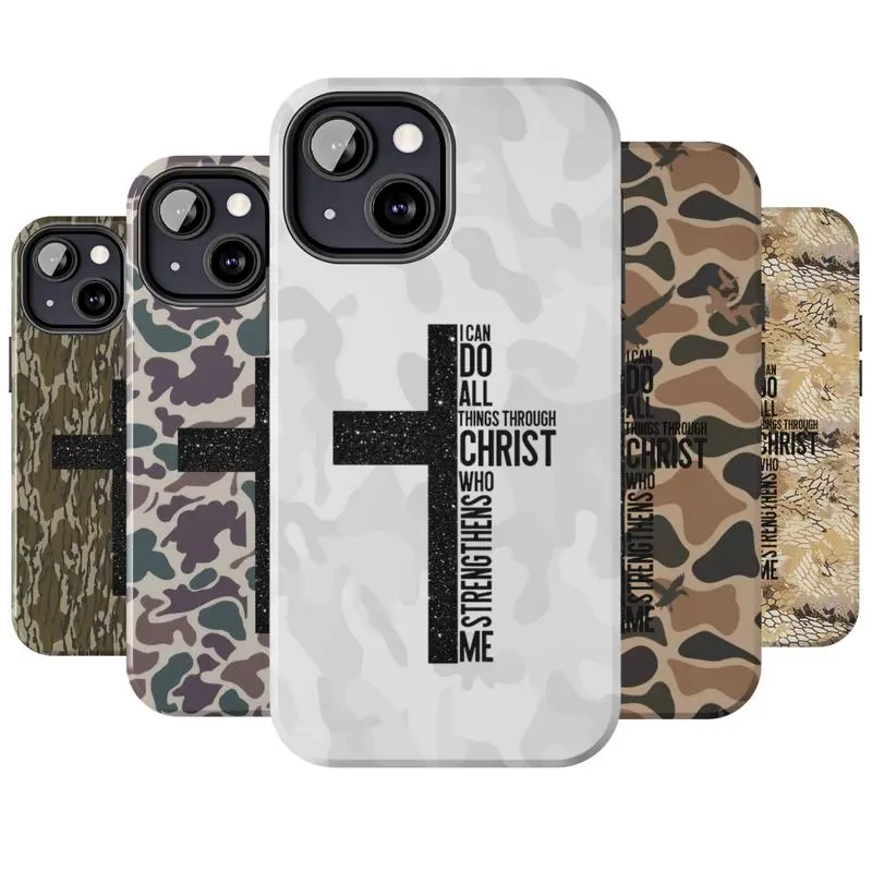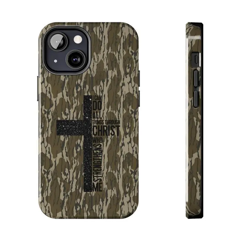 Vintage I Can Do All Things Through Christ Who Strengthens Me Camo Cross Phone Case, Ol School Camo Aesthetic For iPhone 17 16 15 14 13 12 11 X 8 Plus, Durable Cover
