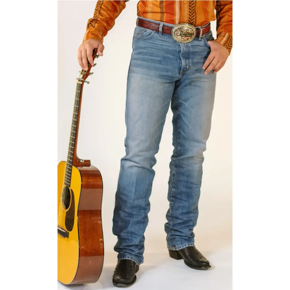 Rugged where it counts and refined where it matters, this jean feels at home on stage and in the saddle. This jean comes in two washes: a light wash for a lived-in every day feel, and a dark wash for dressier occasions.