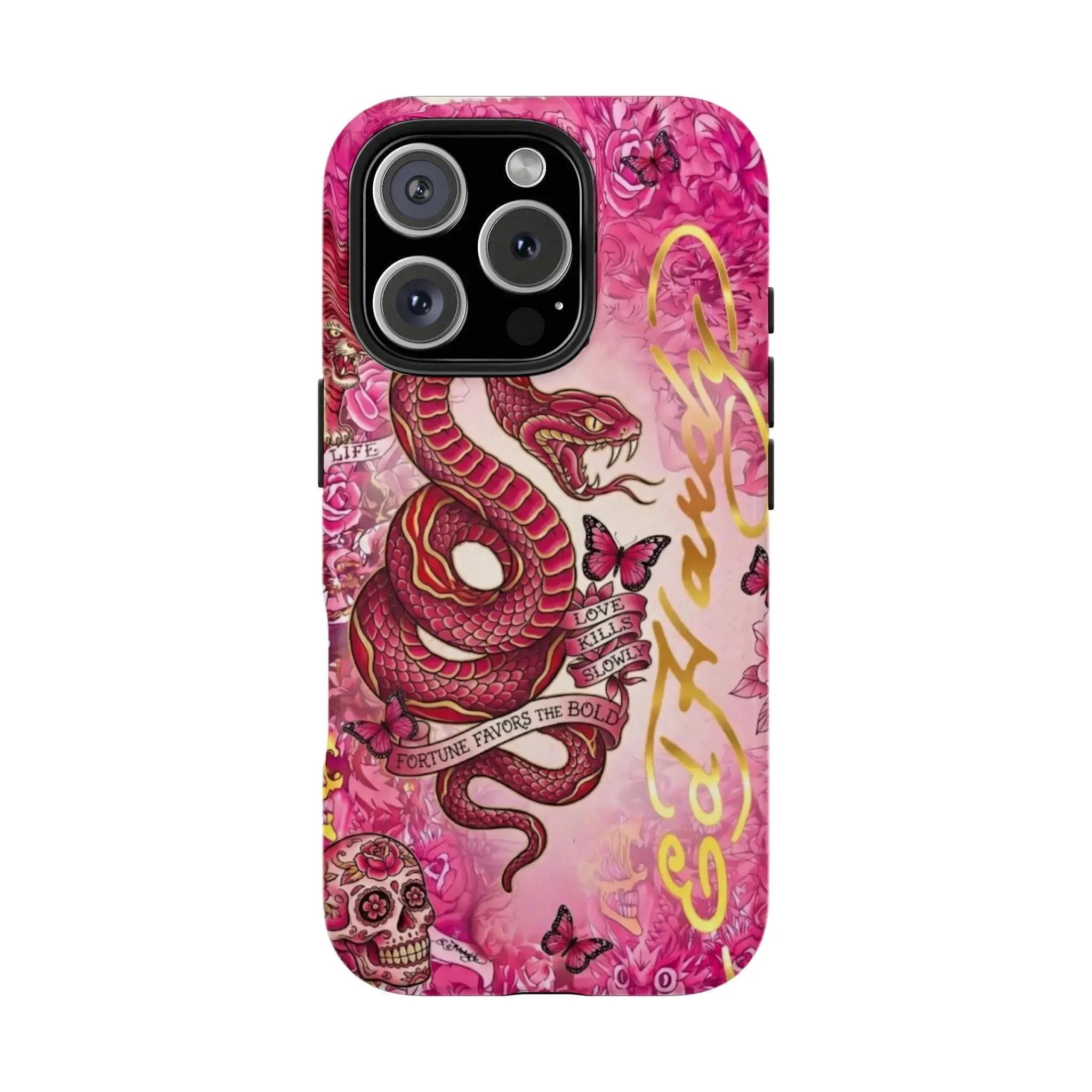 🎀 Pink Ed Hardy Skull Leopard Tattoo iPhone Case 🎀