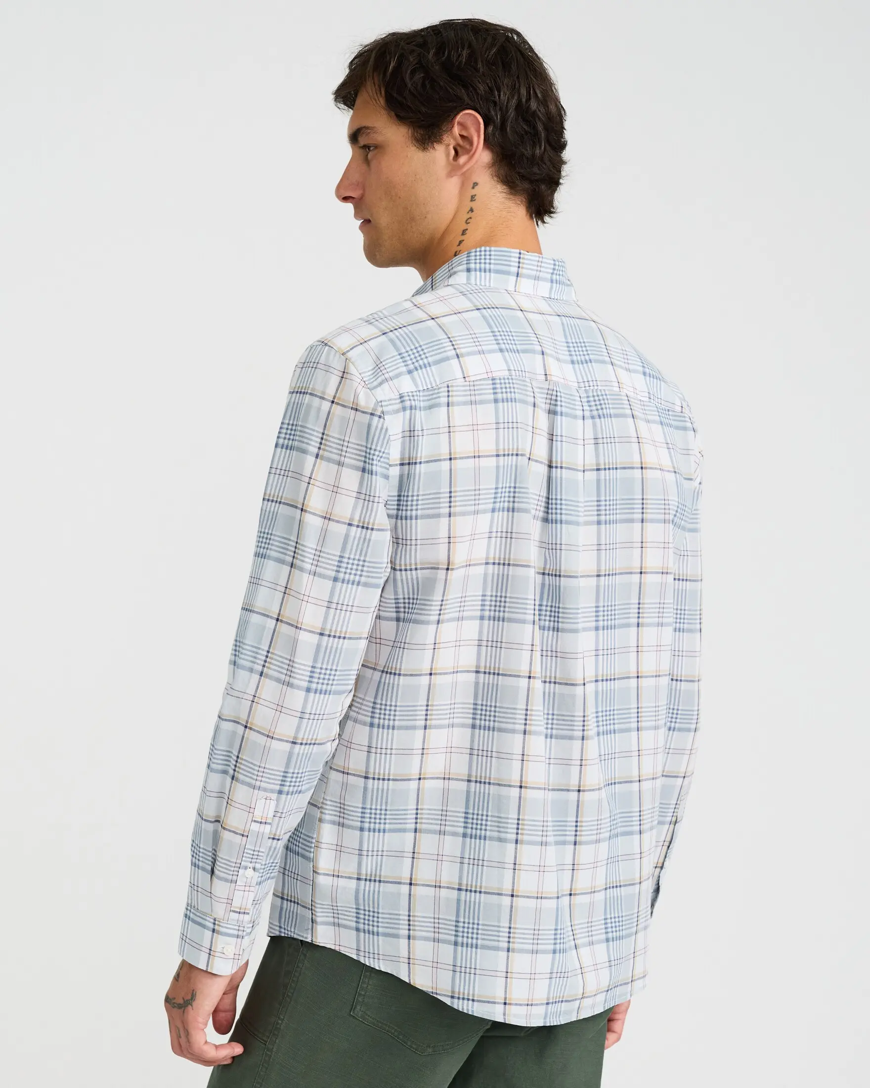 A perfect classic, this blue plaid button down shirt is made from a breathable cotton poplin fabric. Complete with a point collar, long sleeves with button cuffs, a patch chest pocket, and a full button front. Pair over your favorite t-shirt and roll up the sleeves for an effortless Spring style.