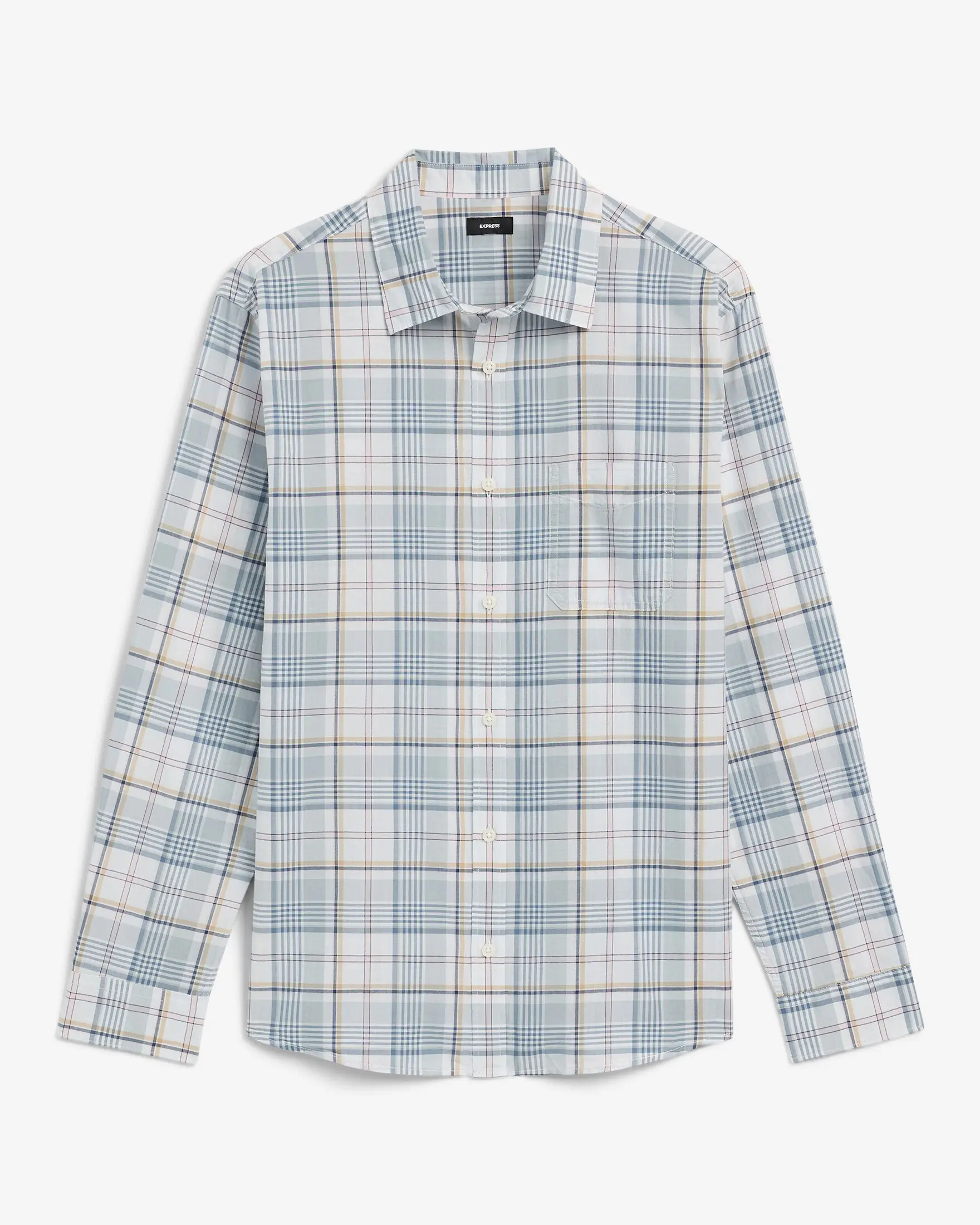 Express Blue Plaid Cotton Long Sleeve Poplin Shirt